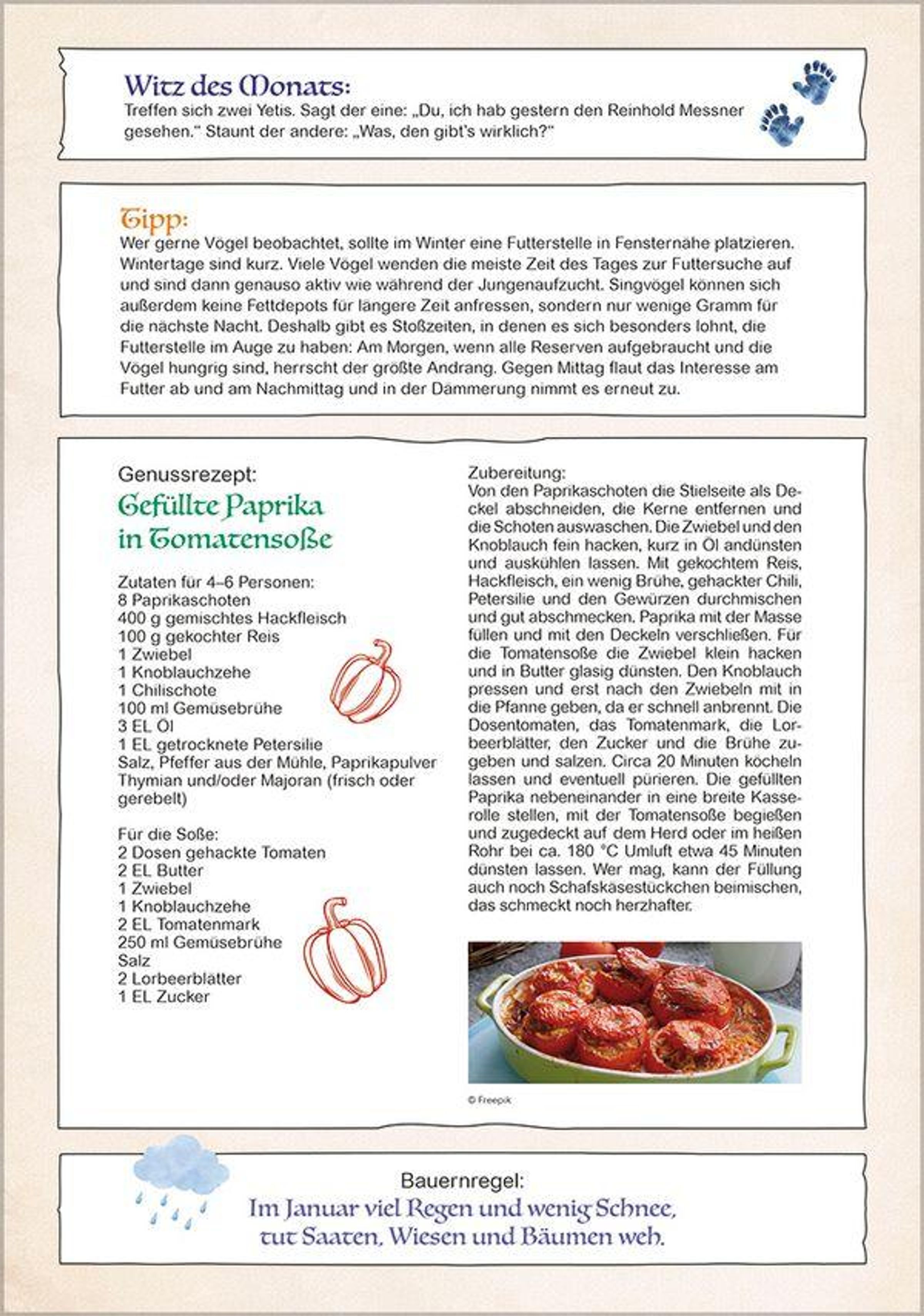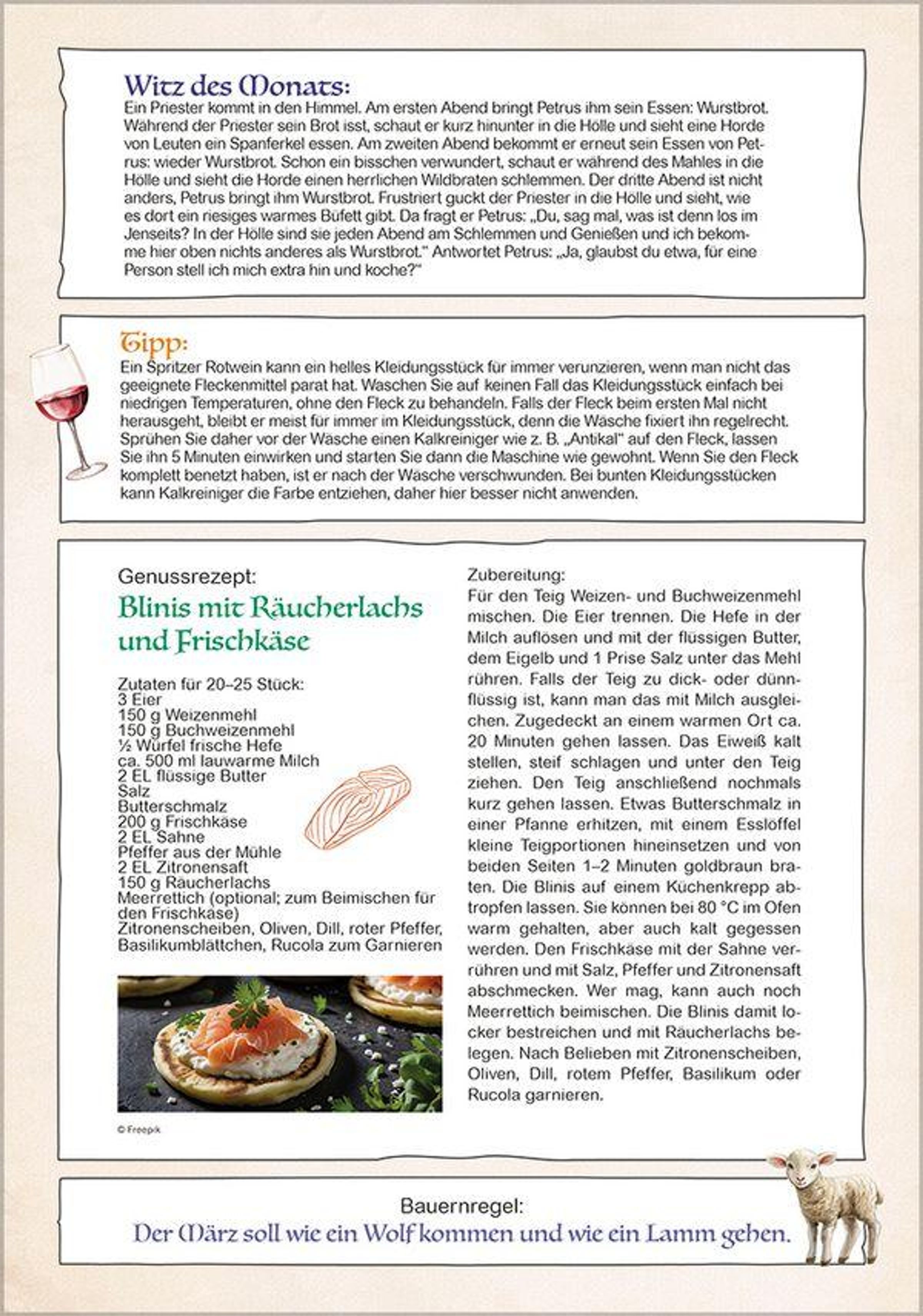 - Mit Witzen, Rezepten, Tipps und Bauernregeln auf der Rückseite