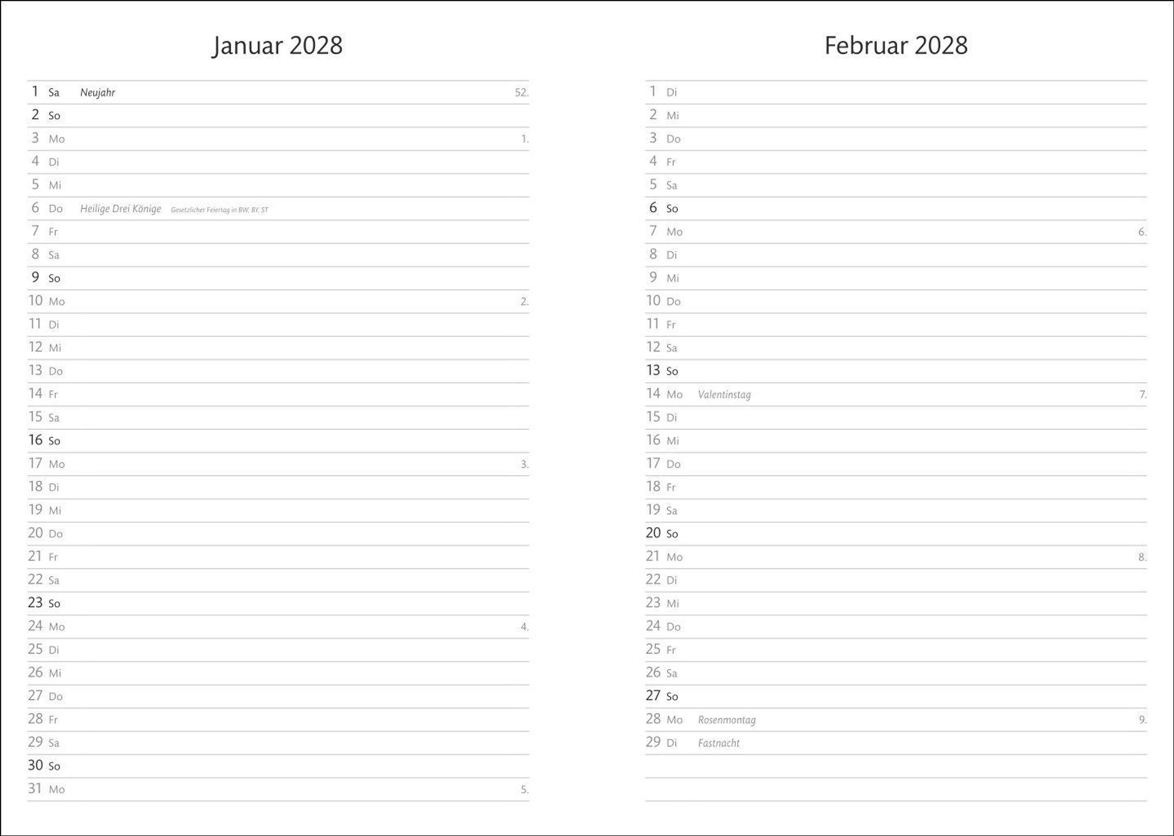 Was steht diese Woche Wichtiges an? Buchkalender mit viel Platz für Notizen, mit dem Sie stilvoll den Überblick behalten