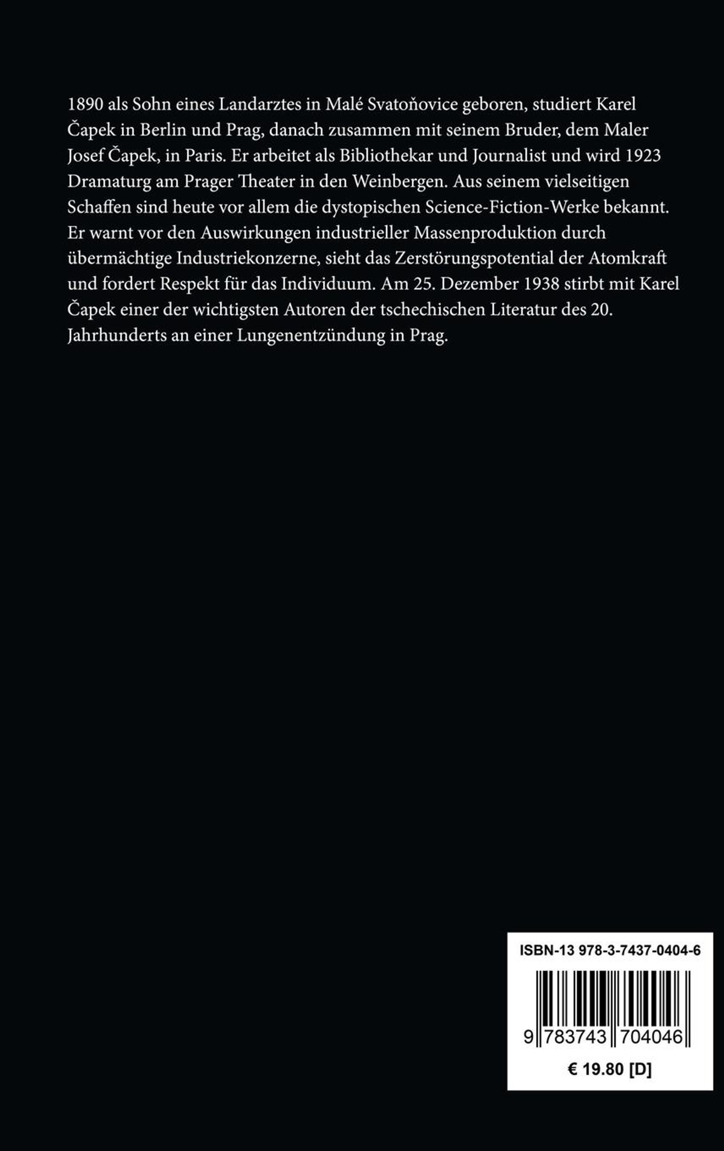 Originaltitel: >>R. U.R. Rossum's Universal Robots<<. Erstdruck 1920. Hier in der deutschen Übersetzung von Otto Pick, Prag, 1922.