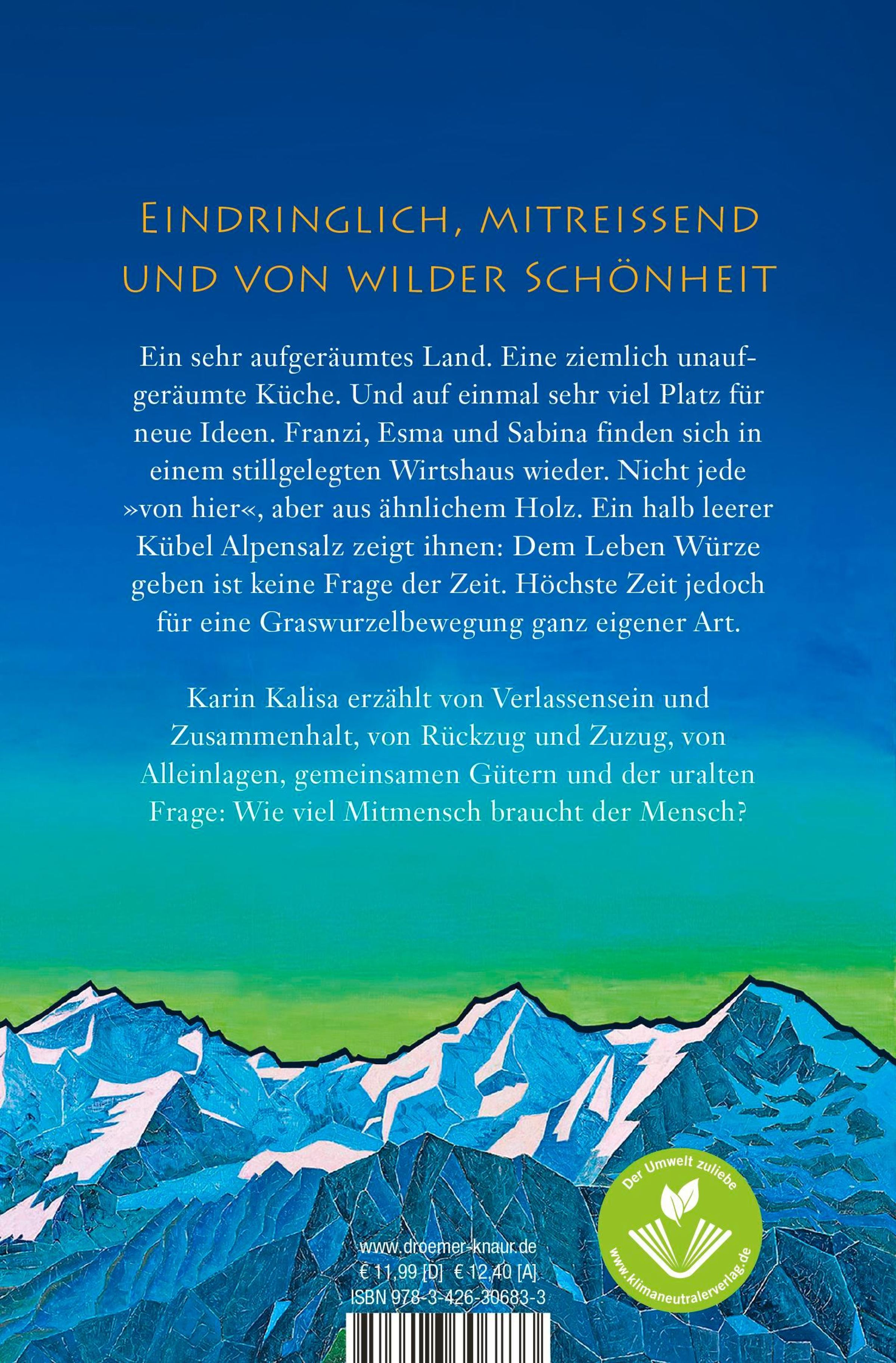 wieder. Nicht jede 'von hier', aber aus ähnlichem Holz. Ein halb leerer Kübel Alpensalz zeigt ihnen: Dem Leben Würze geben ist keine Frage der Zeit. Höchste Zeit jedoch für eine Graswurzelbewegung ganz eigener Art. Karin Kalisa erzählt von Verlassensein und Zusammenhalt, über Rückzug und Zuzug, über Alleinlagen, gemeinsame Güter und die uralte Frage: Wie viel Mitmensch braucht der Mensch?