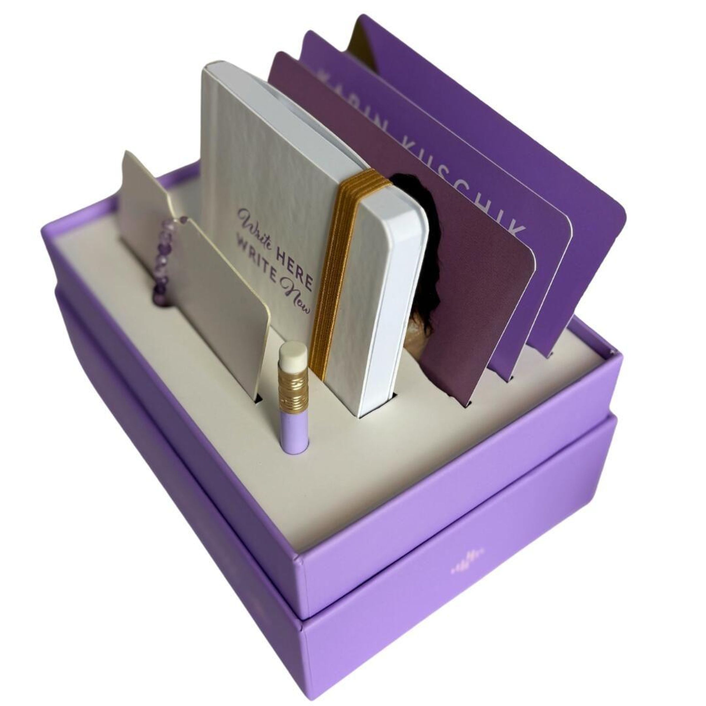 Diese Fan¿Box macht 50 FRAGEN als Erlebnis greifbar: ein hochwertiges Notizbuch mit Stift für eigene Ideen, eine exklusive Meditationsreise direkt hinein ins nächste Wunder, persönliche Postkarten und ein Amethyst¿Armband als leiser Fokus¿Anker für den Alltag. Ach so: Und die ungekürzte Autorinnenlesung gibt es natürlich auch - bequem per Download¿Code. Ein fliederfarbener Traum, liebevoll gestaltet, streng limitiert, und das ideal als Geschenk für 50 FRAGEN Fans und solche die es werden wollen.