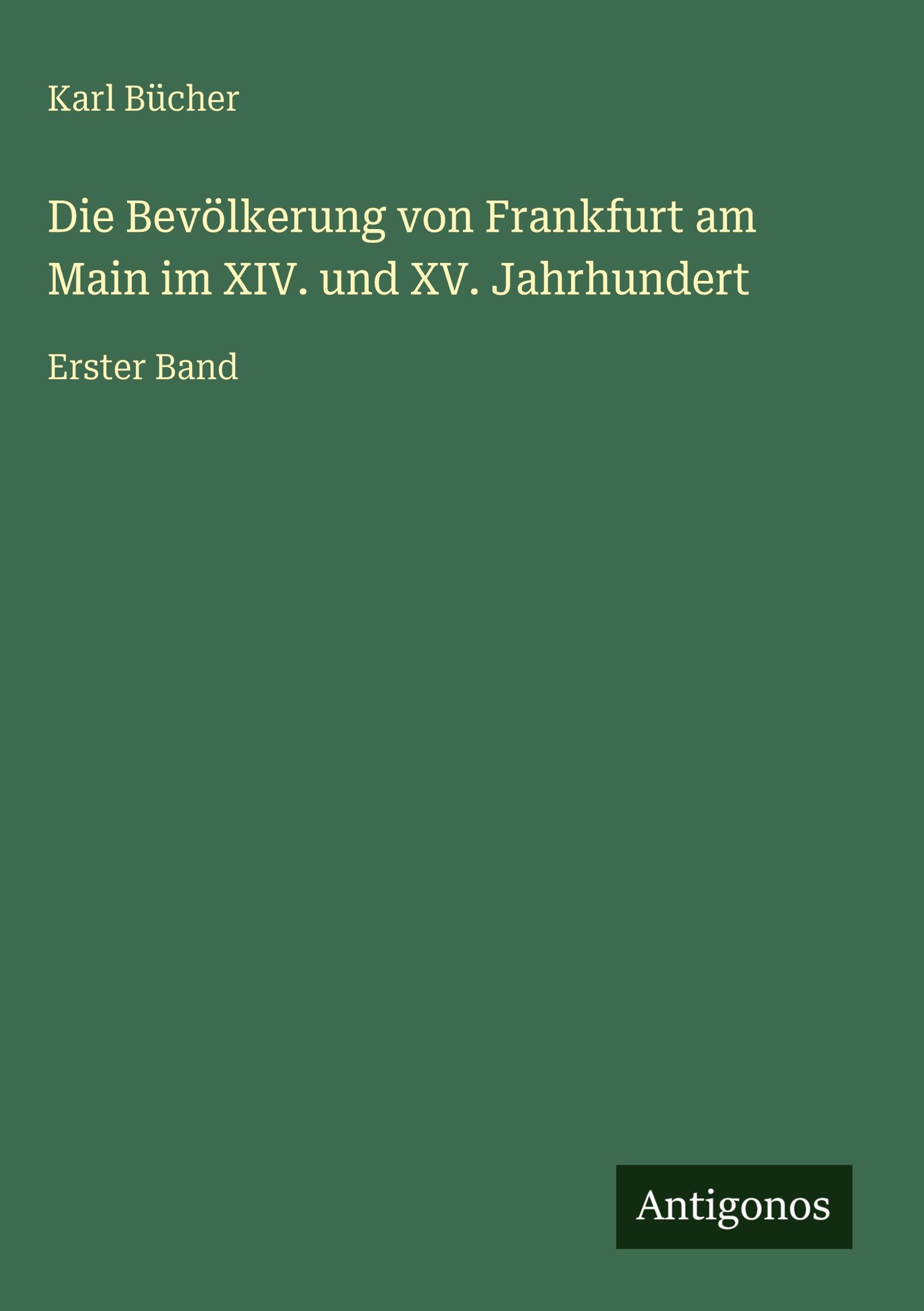 Karl Bücher: Die Bevölkerung von Frankfurt am Main im XIV. und XV. Jahrhundert, Gebunden