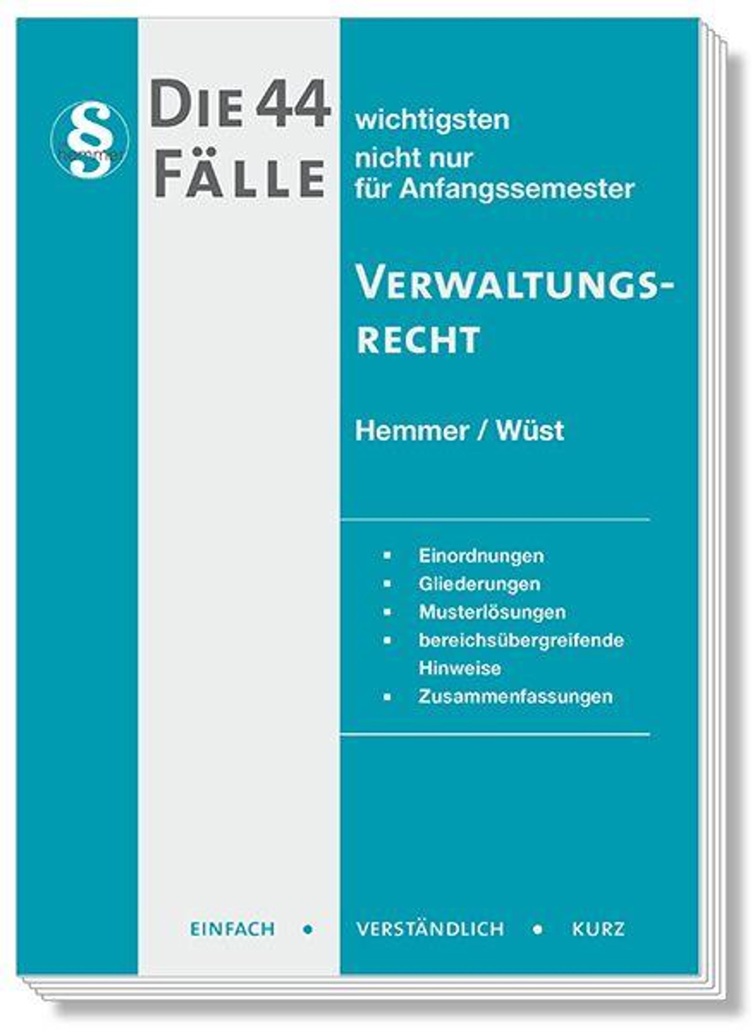 In 44 Fällen haben wir für Sie klassische Probleme des Verwaltungsrechts für Klausur und Hausarbeit systematisch aufbereitet. Diese Fallsammlung ist einfach, verständlich und knapp gehalten. Zum Aufbau: Die Einordnung im Anschluss an den Sachverhalt erleichtert Ihnen den Zugang zu den jeweiligen Problemfeldern. Problem erkannt - Gefahr gebannt. Die Gliederung ermöglicht eine schnelle Übersicht. Die Musterlösungen dienen als Formulierungshilfen für Ihre Klausur. Bereichsübergreifende Hinweise dienen dem Verständnis. Nur so vernetzen Sie frühzeitig gelerntes Wissen. Auf diese Weise können Sie in kürzester Zeit die wichtigsten Probleme zum Verwaltungsrecht anwendungsspezifisch erlernen. Als Profis mit langjähriger Erfahrung und Erfolg wissen wir, was von Ihnen in Klausur und Hausarbeit erwartet wird.