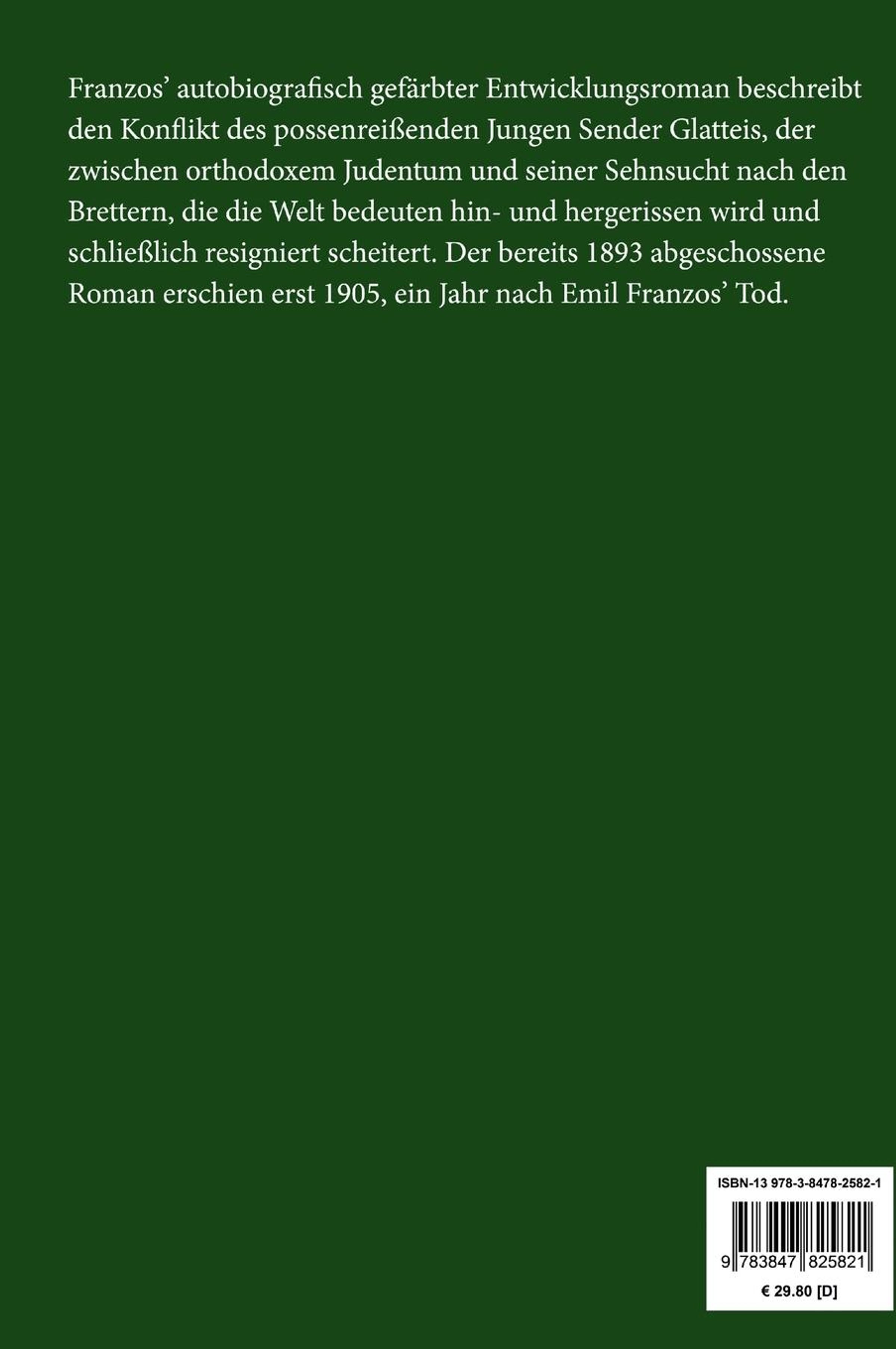 Franzos' autobiografisch gefärbter Entwicklungsroman beschreibt den Konflikt des possenreißenden Jungen Sender Glatteis, der zwischen orthodoxem Judentum und seiner Sehnsucht nach den Brettern, die die Welt bedeuten hin- und hergerissen wird und schließlich resigniert scheitert. Der bereits 1893 abgeschlossene Roman erschien erst 1905, ein Jahr nach Emil Franzos' Tod.