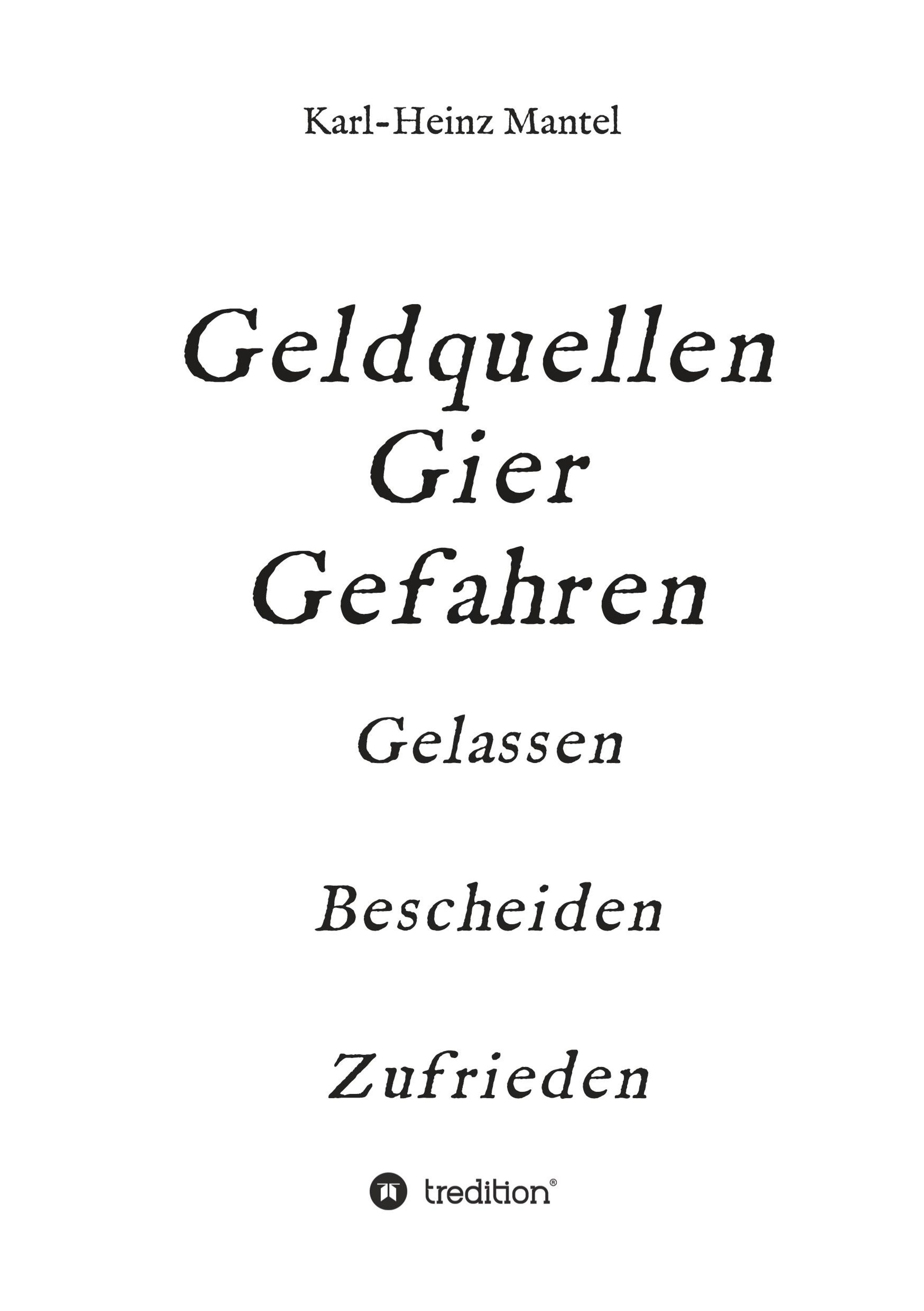 Karl-Heinz Mantel: Geldquellen Gier Gefahren, Buch, Buch