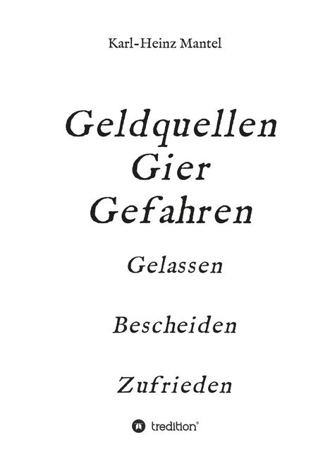 Der Artikel Karl-Heinz Mantel: Geldquellen Gier Gefahren wurde in den Warenkorb gelegt.