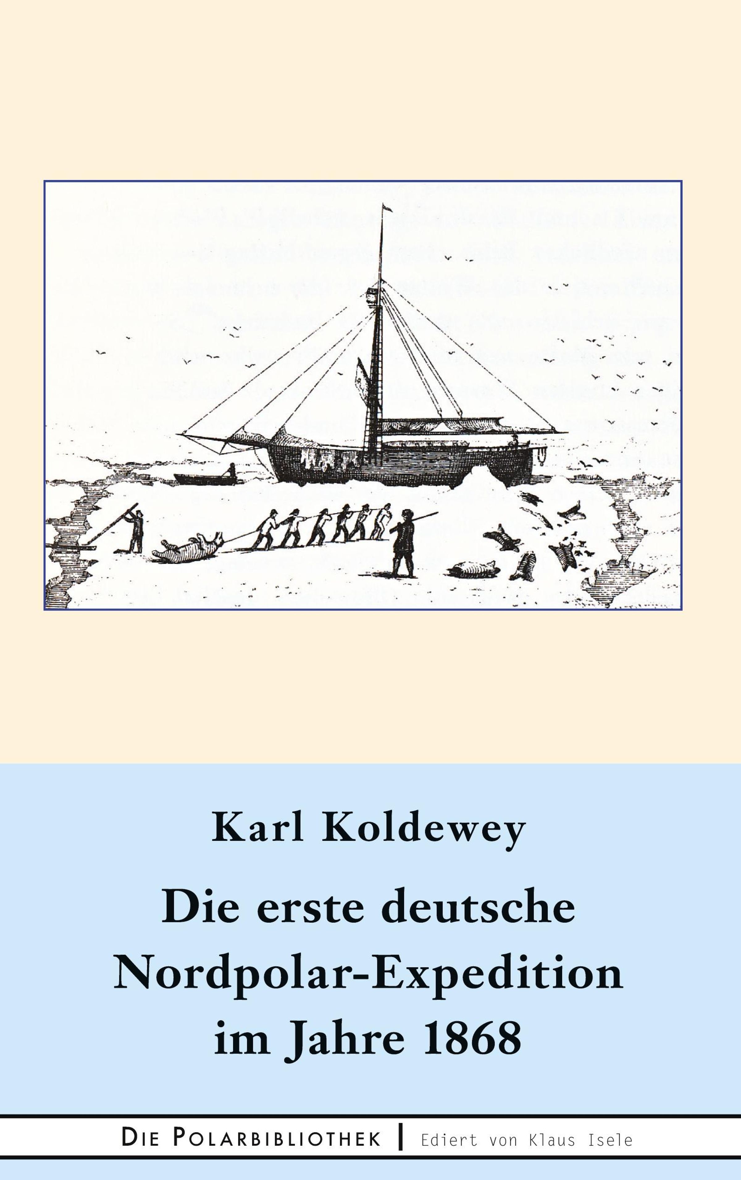 1868 stach das Expeditionsschiff >>Grönland<< mit zwölf Mann Besatzung in Richtung Norden in See. Die Mannschaft sollte im Auftrag des bekannten Geographen, Kartographen und Zeitschriftenherausgebers August Petermann die Ostküste von Grönland erforschen und dessen Theorie belegen, daß eine warme Strömung das Meer am Nordpol eisfrei hielt. Zum Kapitän der Expedition wurde Karl Koldewey ernannt. Die Route des Schiffes führte von Bergen über Jan Mayen zur Ostküste von Grönland. Schon bald blieb das Schiff im Packeis stecken. Fast 200 Seemeilen driftete die Mannnschaft eingeschlossen im Eis nach Süden, drang aber nicht zur grönländischen Küste vor. Danach wurde Spitzbergen angesteuert. Entlang der Westküste ging es nach Norden, bis das nördliche Packeis erreicht wurde. Weil sich keine Passage durch dieses hindurch finden ließ, segelte die >>Grönland<< wieder nach Süden, um einen zweiten Versuch zu unternehmen, den Packeisgürtel von Ostgrönland zu durchdringen, jedoch wieder ohne Erfolg. Ein weiteres Mal segelte die >>Grönland<< zum Spitzbergen-Archipel und ankerte in der Hinlopenstraße. Dort wurden Erkundungsausflüge an Land unternommen, die Küstenlinien kartiert und etliche Orte benannt. Am 28. September 1868 kehrte die erste deutsche Nordpolar-Expedition nach Bergen zurück. Obwohl sie ihre Ziele aufgrund der 1868 schwierigen Eisverhältnisse nicht erreichen konnte, lieferte die Expedition wichtige arktische Erkenntnisse, die sich im nächsten Jahr bei der zweiten Nordpolar-Expedition auszahlten.
