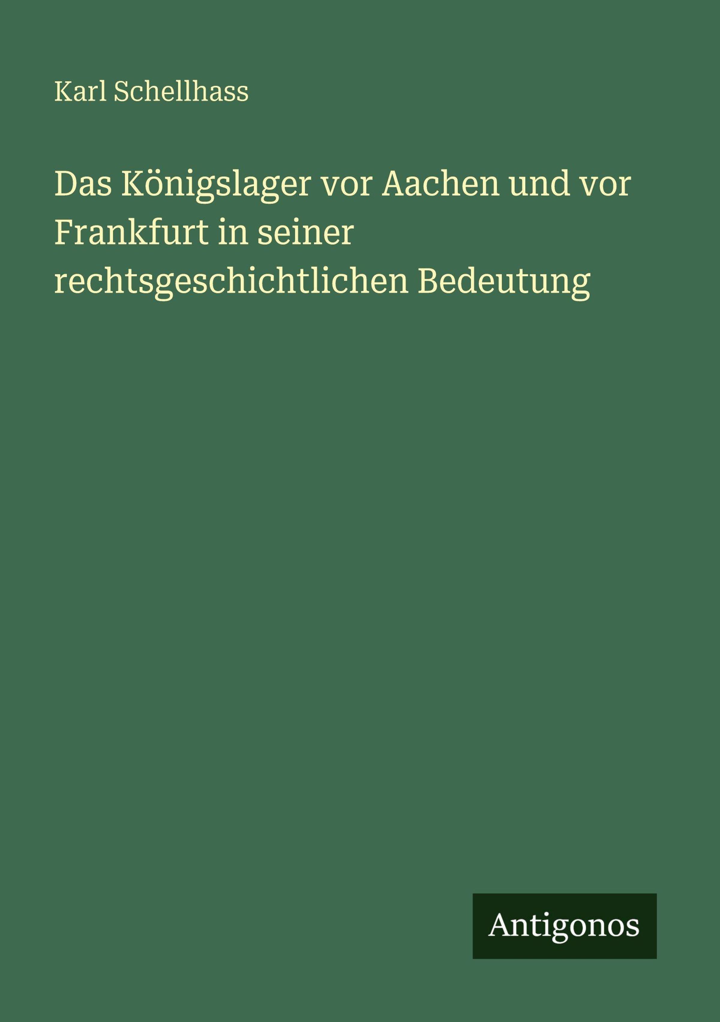 Das Königslager vor Aachen und vor Frankfurt in seiner rechtsgeschichtlichen Bedeutung