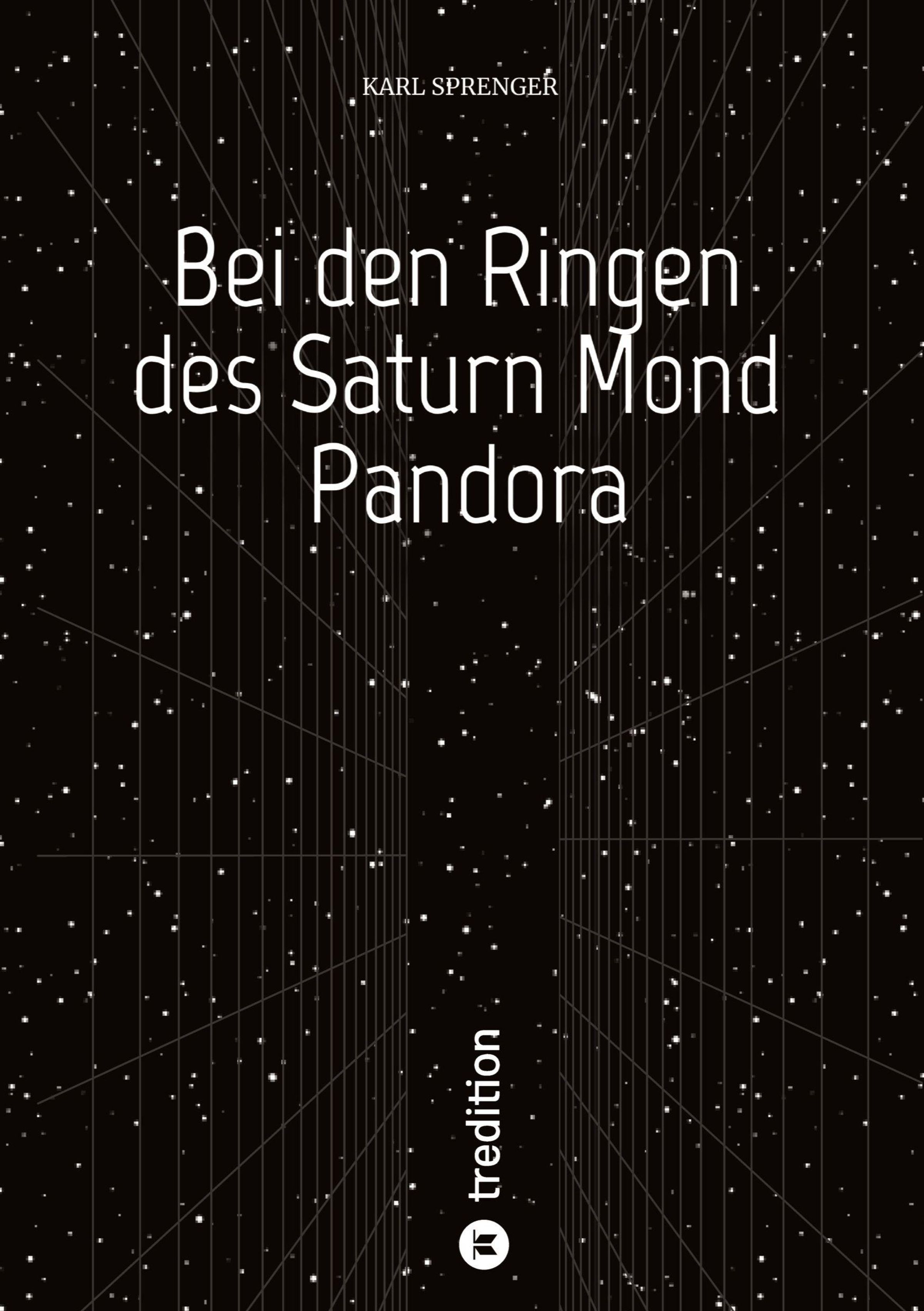 "Bei den Ringen des Saturn Mond Pandora" von Karl Sprenger. Hintergrund: Sterne und Netzlinien, vertikales tredition-Logo., Buch