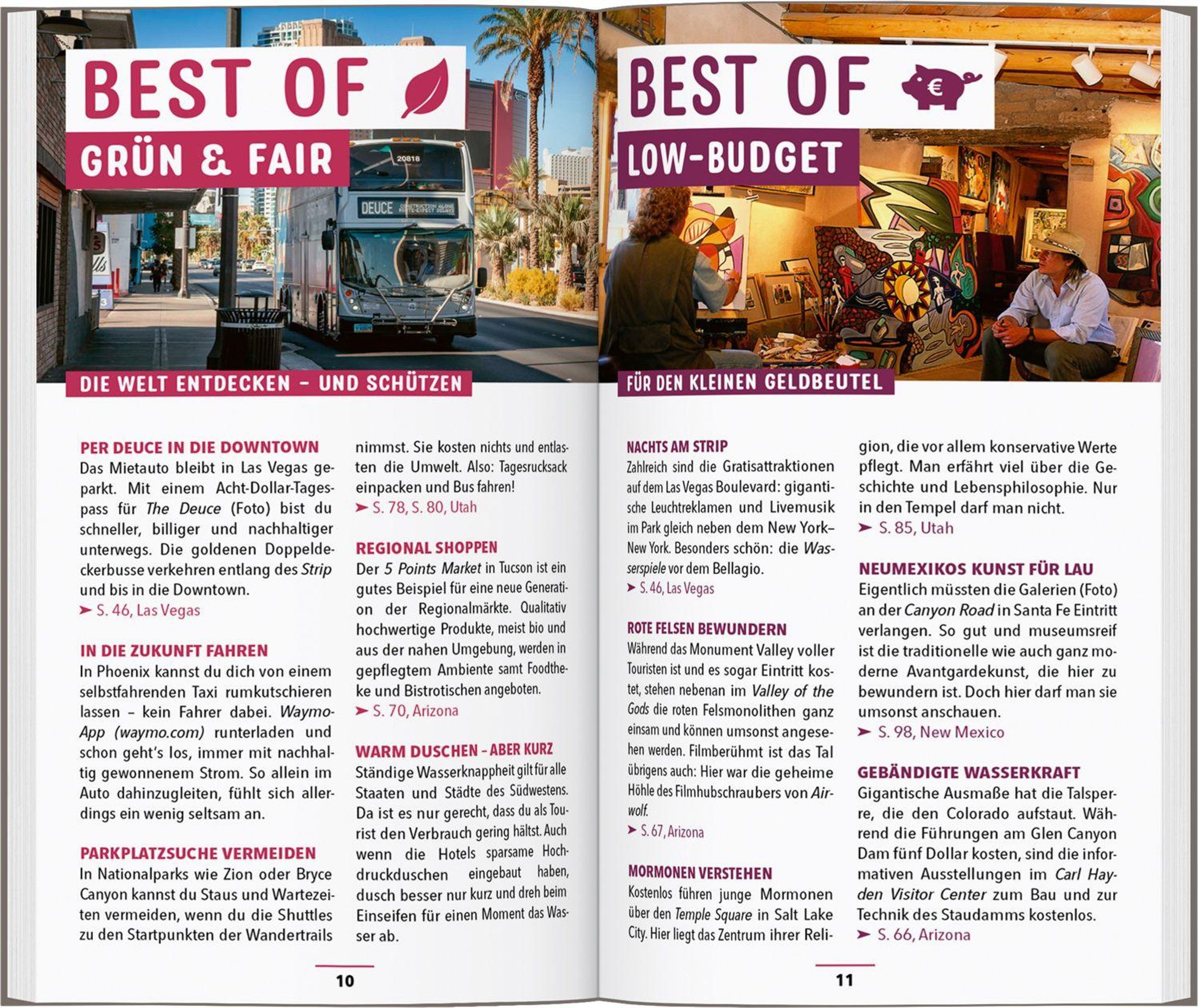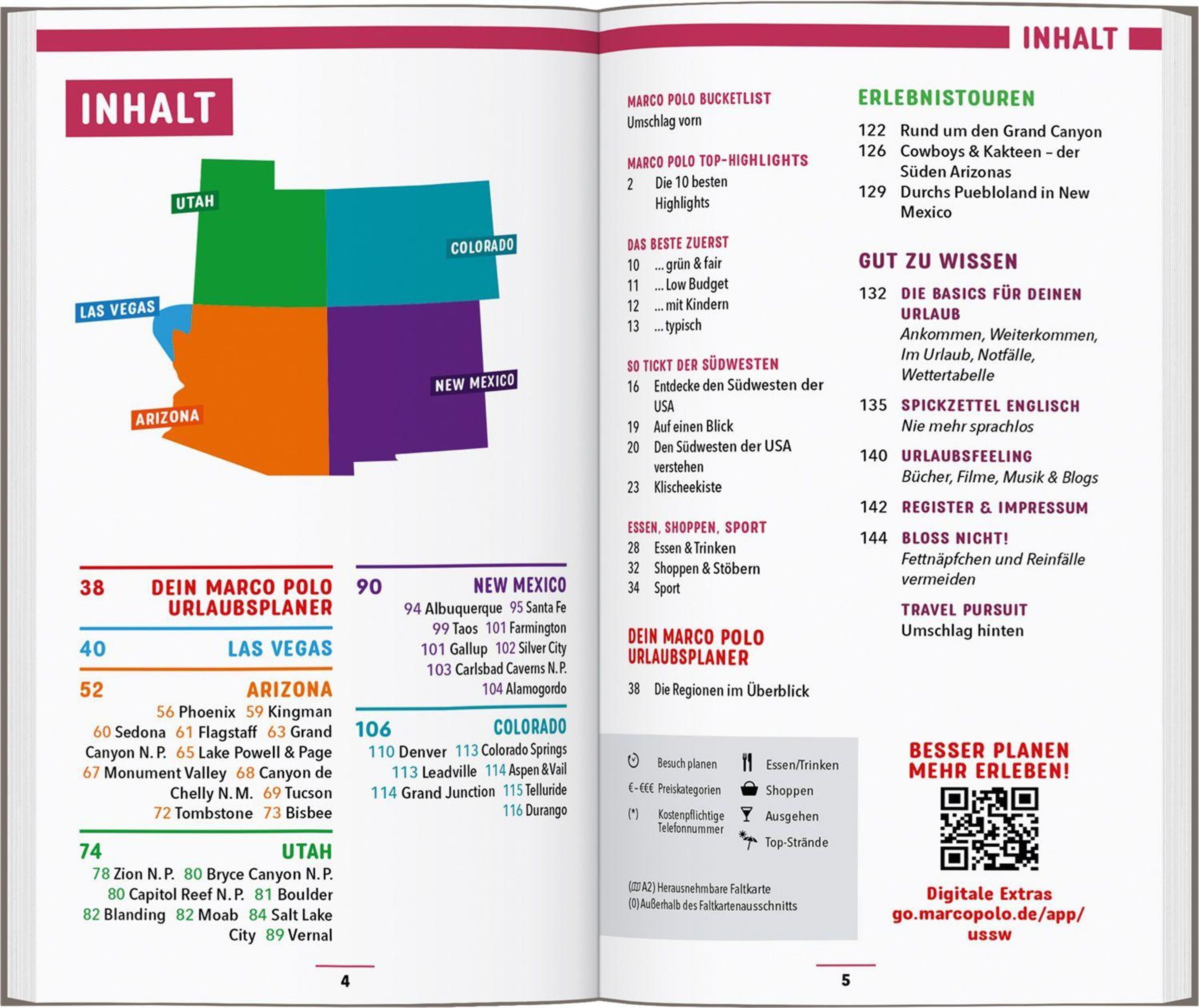 Mit dem MARCO POLO Reiseführer durch den Südwesten der USA: Entdecke Las Vegas, Colorado, New Mexico, Arizona, Utah, Rote Canyons, uralte Siedlungen, riesige Kakteen und mittendrin glitzernde Großstädte: Kaum eine Region der USA ist so gegensätzlich wie die Wüstenstaaten im Südwesten. Kein Wunder, dass sie so oft als Filmkulisse herhalten dürfen.