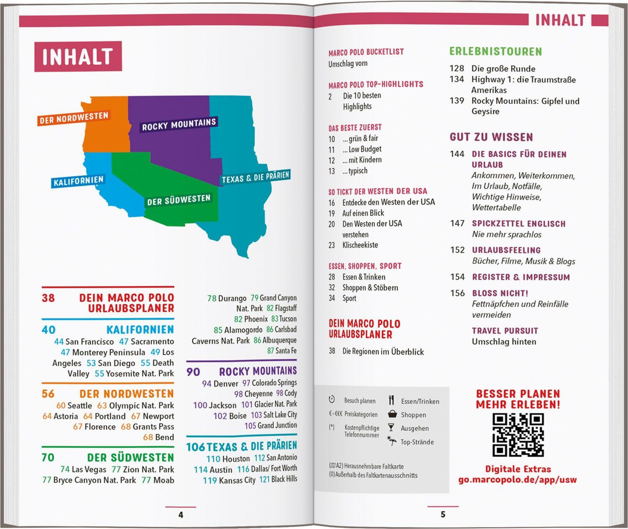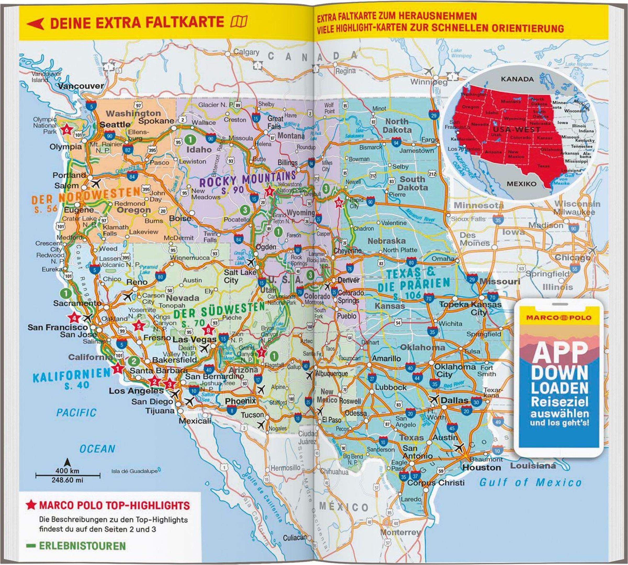 Mit dem MARCO POLO Reiseführer USA West hast du alle Regionen im Überblick: Von Kalifornien, über den Nordwesten mit Seattle und Portland, die Rocky Mountains mit Salt Lake City über den Südwesten mit Las Vegas bis nach Texas. In deinem MARCO POLO Reiseführer findest du alles, was du für deinen Urlaub brauchst: Wissenswertes zum Reiseziel und zur Anreise, Tipps für Übernachtungen, Shopping, Sport und einzigartige Erlebnistouren.