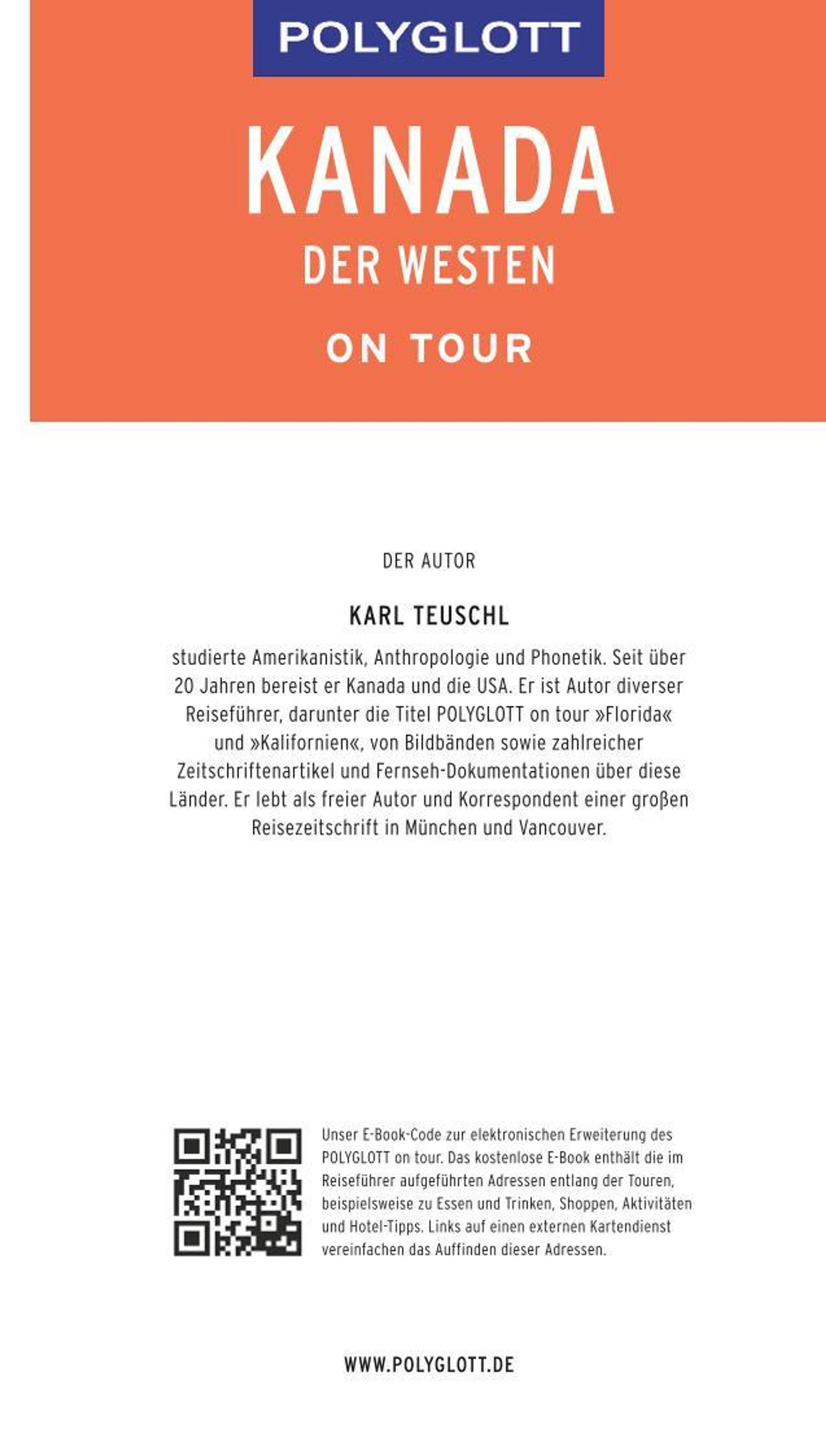 Karl Teuschl arbeitet als freier Journalist in München. Er bereist seit Jahren Nordamerika und hat zahlreiche Reportagen, Reiseberichte und Reiseführer veröffentlicht.Anmerkungen: