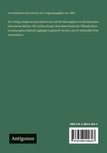 Unveränderter Nachdruck der Originalausgabe von 1867. Der Verlag Antigonos spezialisiert sich auf die Herausgabe von Nachdrucken historischer Bücher. Wir achten darauf, dass diese Werke der Öffentlichkeit in einem guten Zustand zugänglich gemacht werden, um ihr kulturelles Erbe zu bewahren.