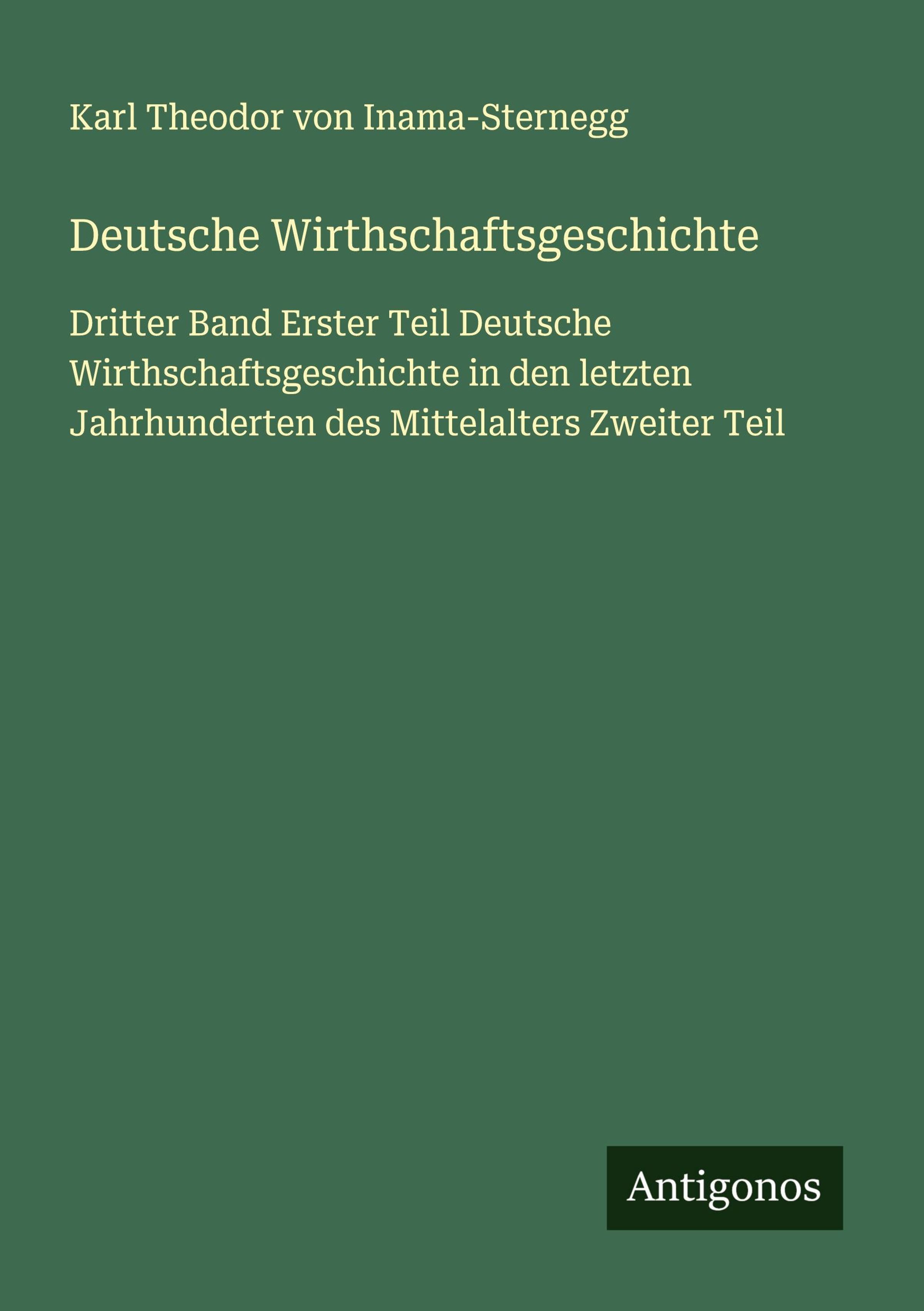 • Dritter Band Erster Teil Deutsche Wirthschaftsgeschichte in den letzten Jahrhunderten des Mittelalters Zweiter Teil