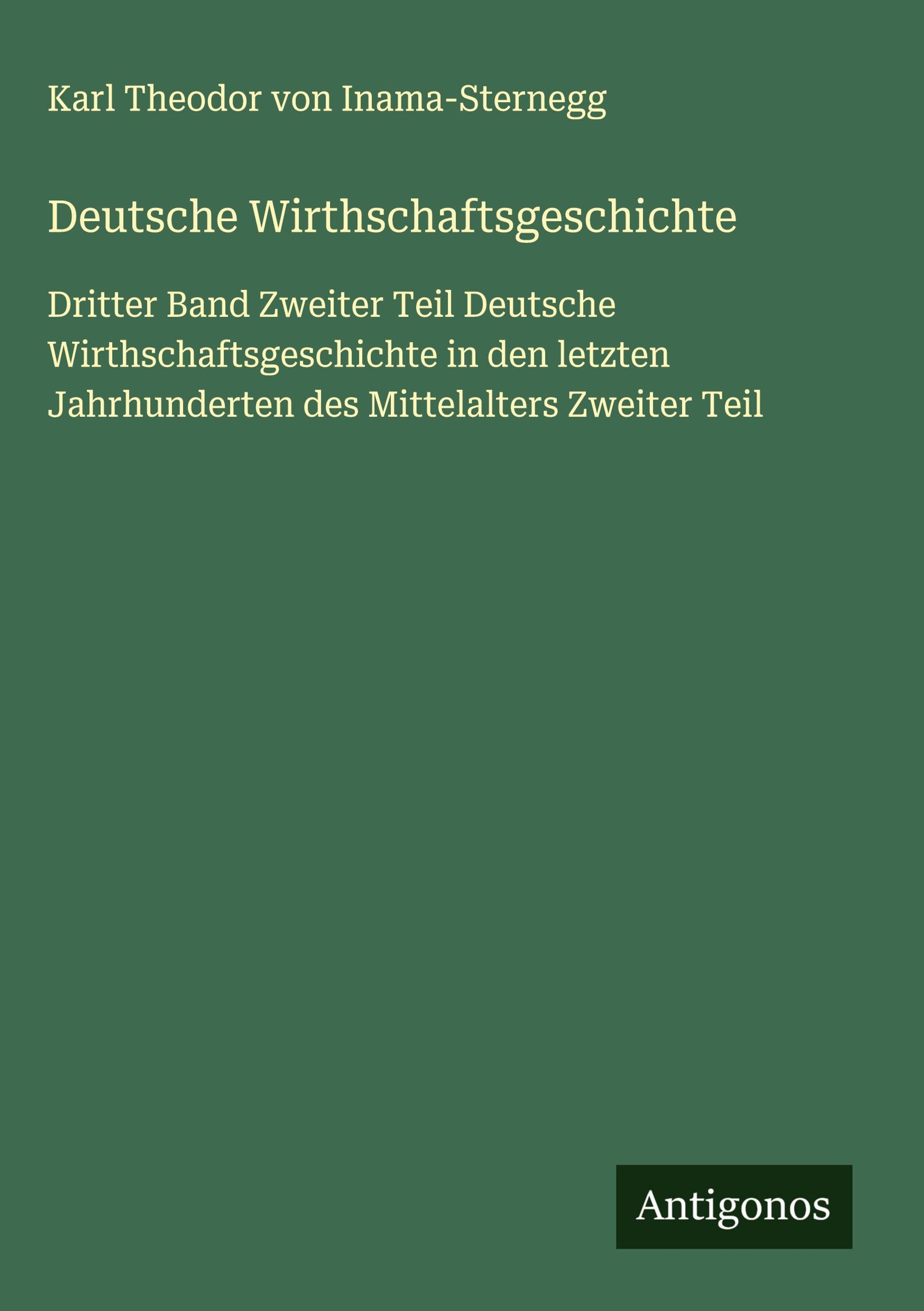 • Dritter Band Zweiter Teil Deutsche Wirthschaftsgeschichte in den letzten Jahrhunderten des Mittelalters Zweiter Teil