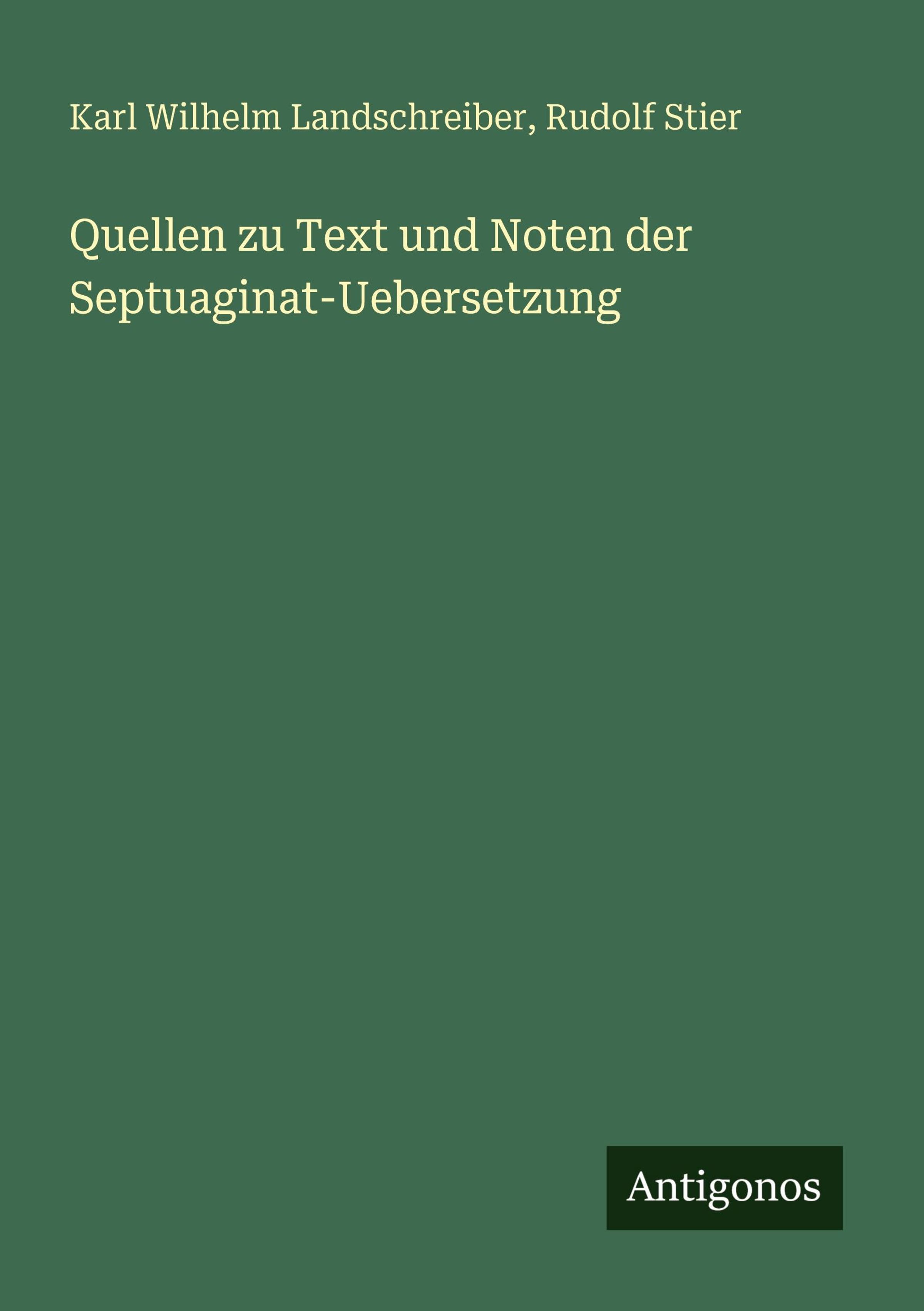 Der Artikel Karl Wilhelm Landschreiber: Quellen zu Text und Noten der Septuaginat-Uebersetzung wurde in den Warenkorb gelegt.