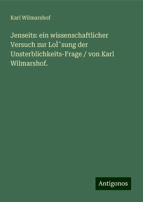 Karl Wilmarshof: Wilmarshof, K: Jenseits: ein wissenschaftlicher Versuch zur, Fester Einband