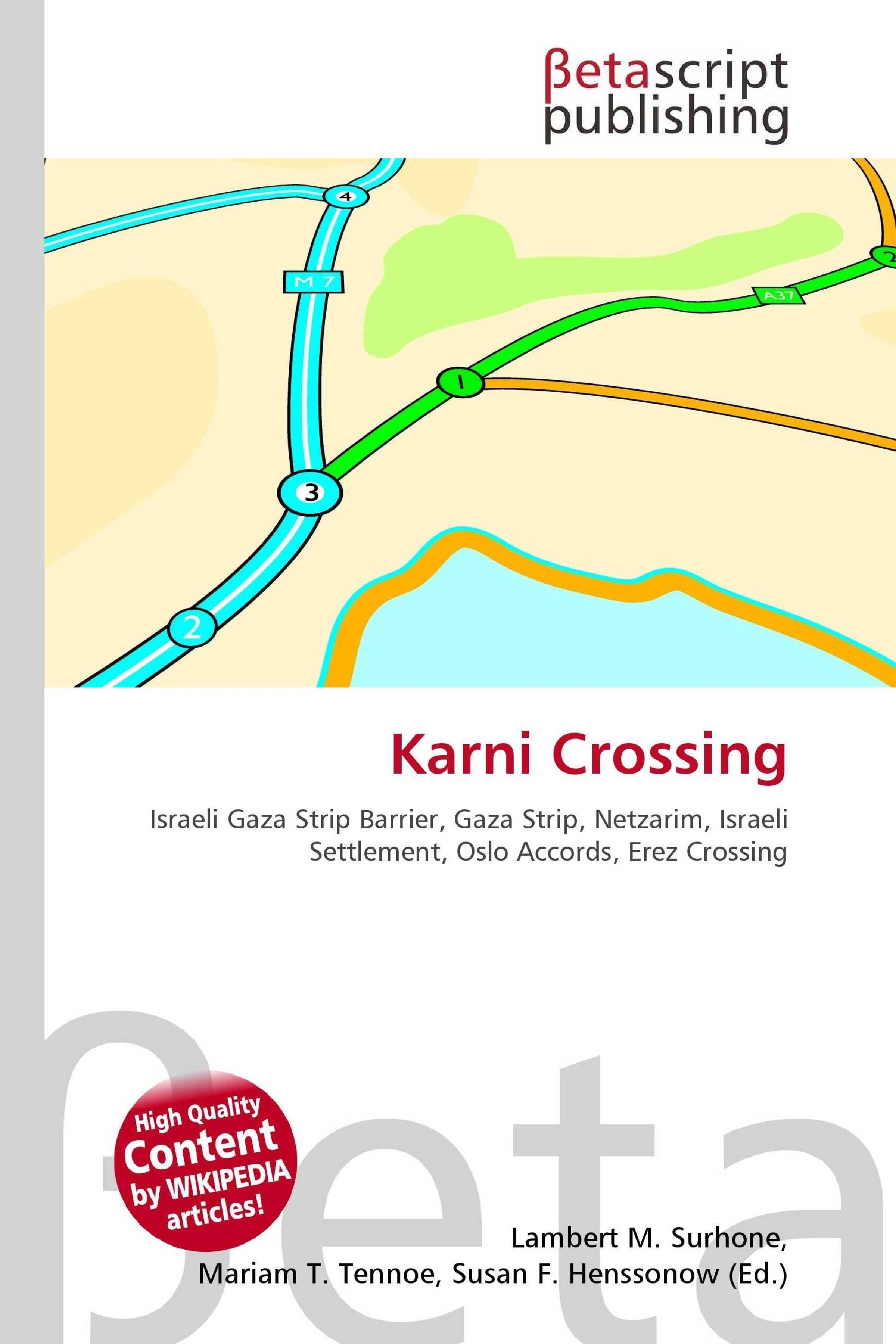 Please note that the content of this book primarily consists of articles available from Wikipedia or other free sources online. The Karni Crossing is a cargo terminal on the Israeli Gaza Strip barrier. It is located in the north-eastern end of the Gaza Strip and was built in 1993 in order to allow Palestinian merchants to export and import goods. The Karni Crossing was also used by the residents of Netzarim since the Karni road was the only route to that isolated Israeli settlement on which Jewish travel was allowed after the 1994 implementation of the Oslo Accords. Unlike the Erez Crossing, which is managed by the Israel Defense Forces, Karni is managed by the Israel Airports Authority.