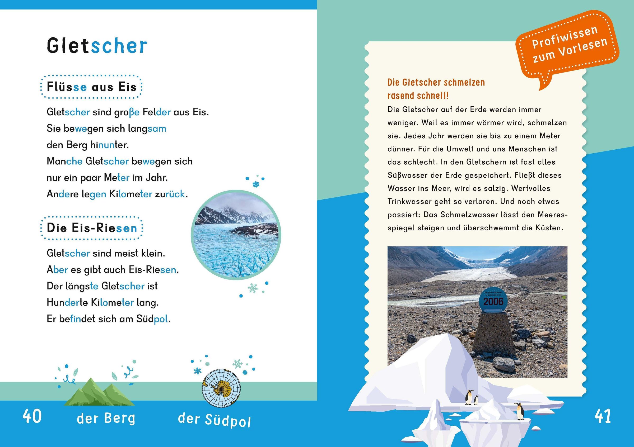Große, klare Schrift und zweifarbige Silbenmarkierungen erleichtern das Entziffern der Wörter. Schlüsselbegriffe mit begleitender Illustration, kleine Leserätsel und kurze Vorleseabschnitte sorgen für Abwechslung und stärken das Textverständnis. Zahlreiche Fotos und erstaunliche Fakten motivieren Erstleser und Erstleserinnen, dranzubleiben und systematisch Lesekompetenz aufzubauen. Dazwischen gibt es immer wieder Passagen zum Vorlesen für Erwachsene oder ältere Geschwister, die noch mehr faszinierendes Kinderwissen enthalten. Das alles macht die Reihe zur richtigen Wahl, wenn es um Leseförderung mit nachhaltigem Erfolg und Spaß an der Sache geht!