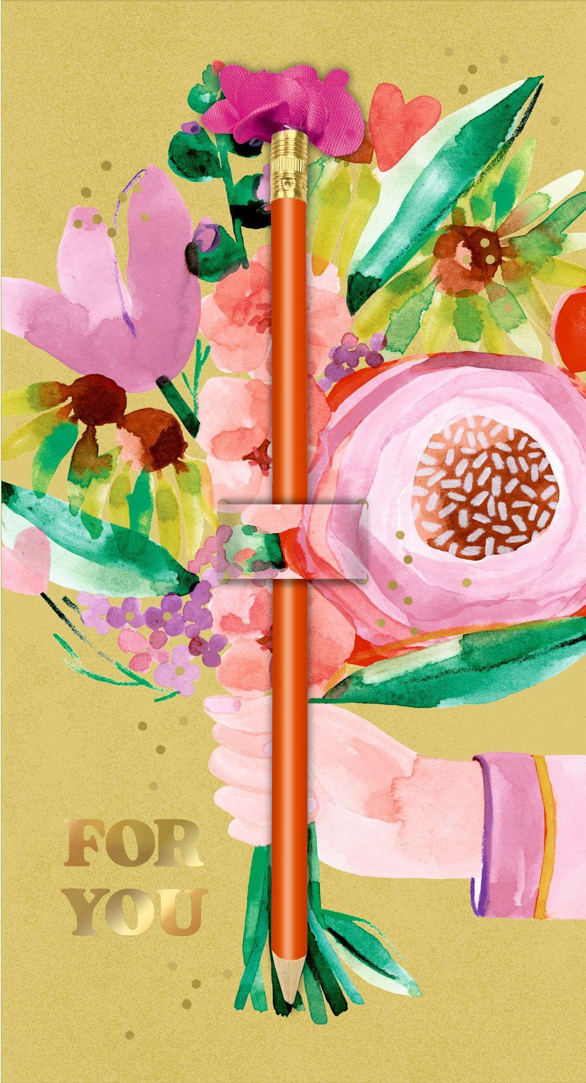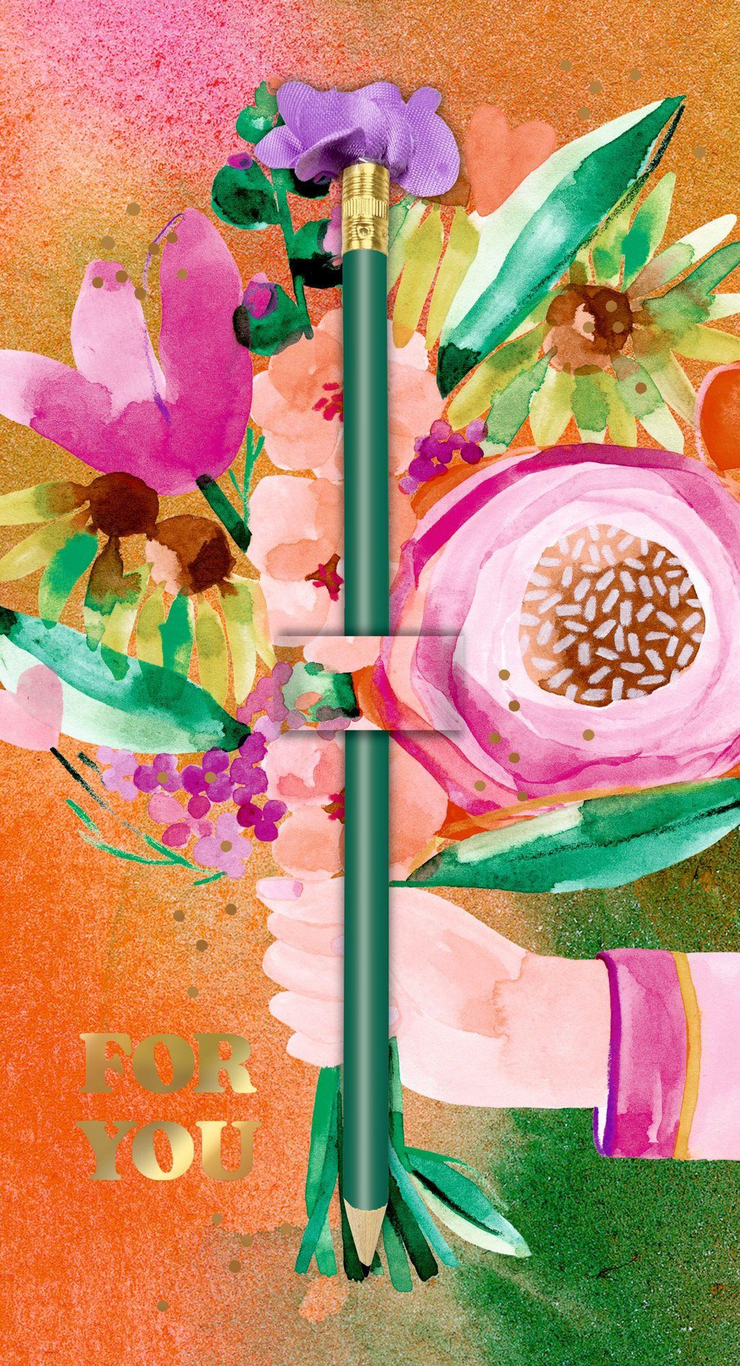 Blumengrüße der besonderen Art! Diese Karte, mit einem ins Design integrierten Blumen-Bleistift, ist eine ideale Beigabe zum Geschenk. Ob zum Geburtstag, Muttertag, zur Genesung, als Dankeschön oder als kleine Aufmerksamkeit zwischendurch - sie zaubert dem Beschenkten sicherlich ein Lächeln ins Gesicht.