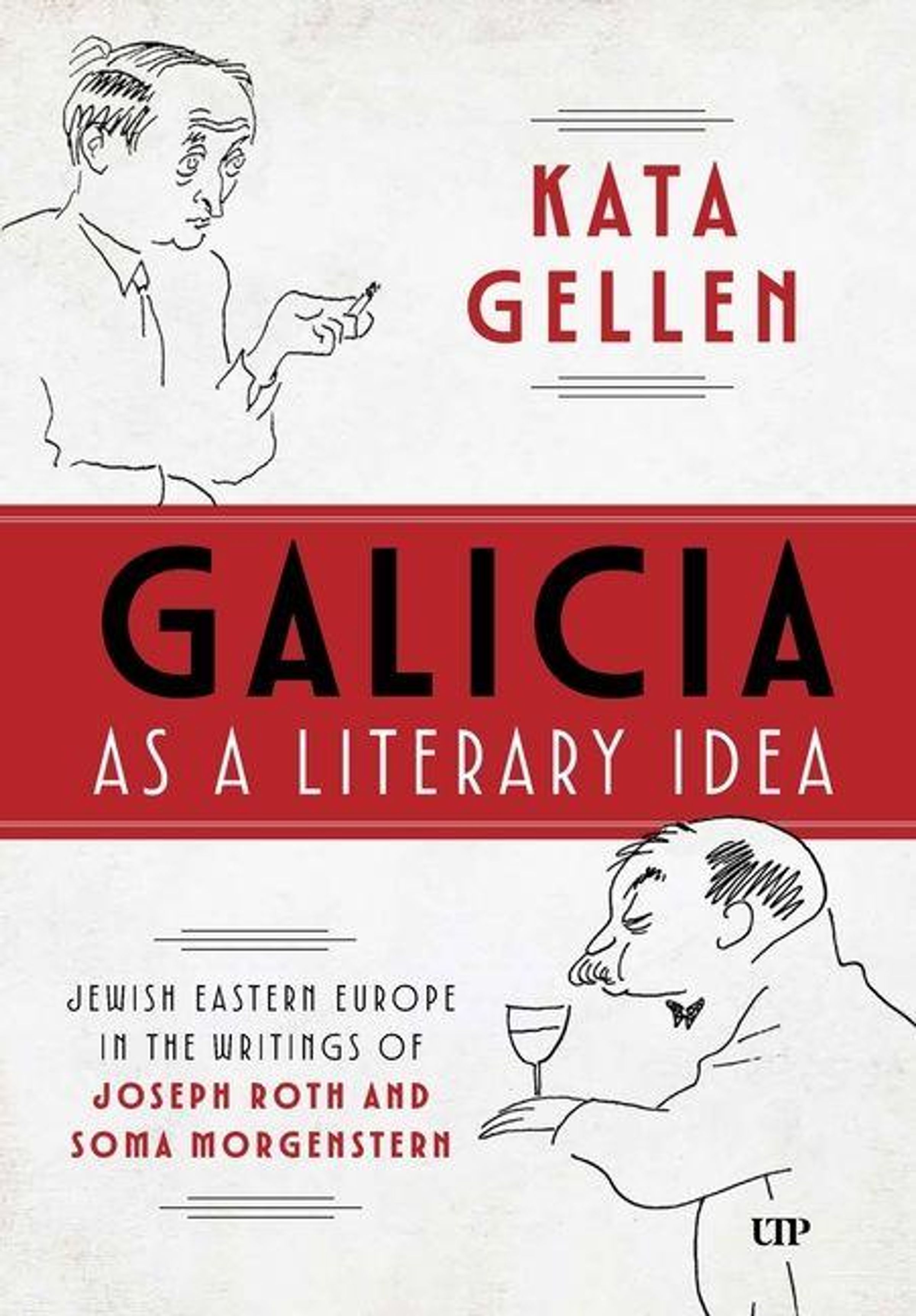 „KATA GELLEN“, „GALICIA AS A LITERARY IDEA“, „JEWISH EASTERN EUROPE IN THE WRITINGS OF JOSEPH ROTH AND SOMA MORGENSTERN“. Zeichnungen zeigen zwei Männer., Buch