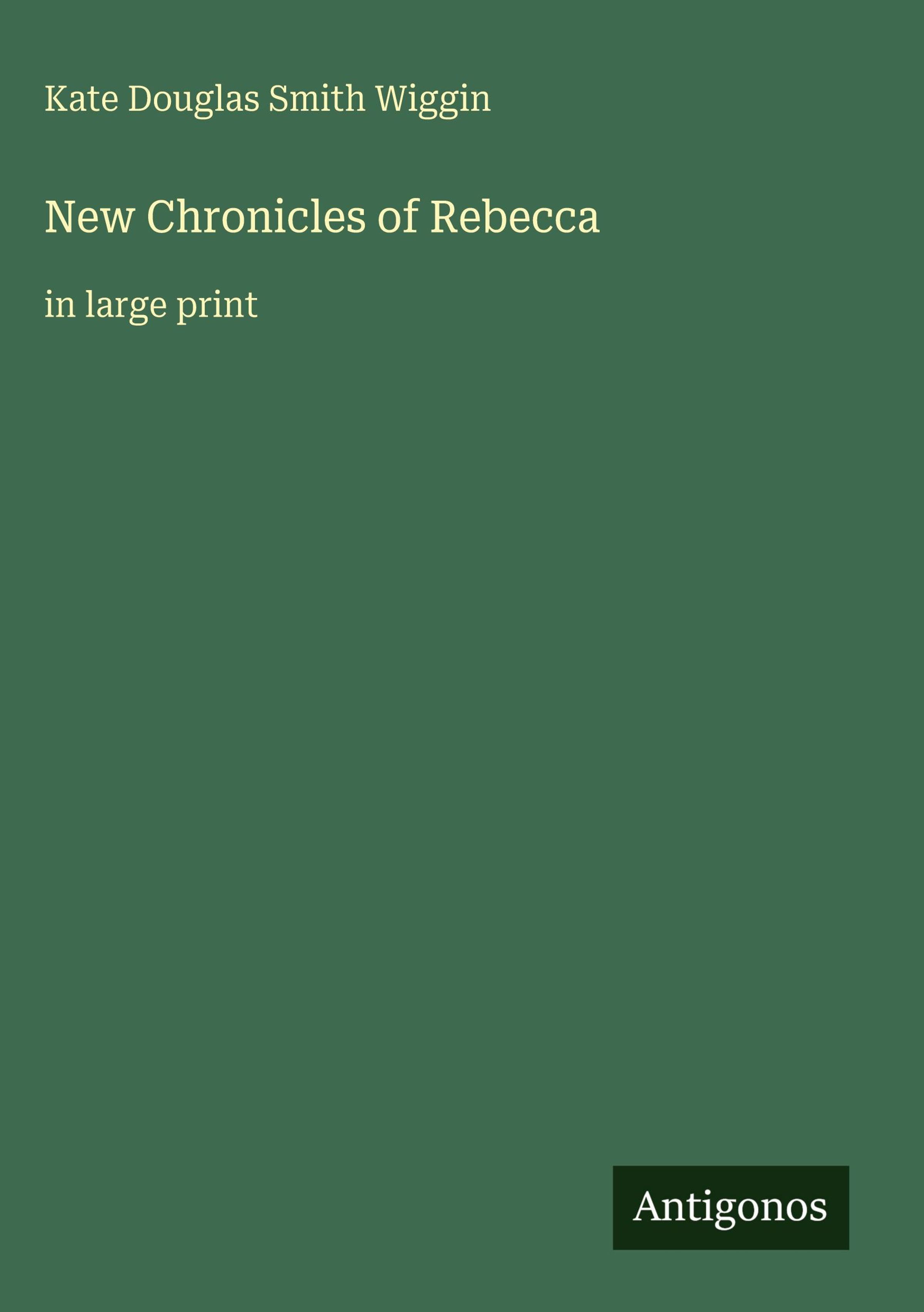 Titel: "New Chronicles of Rebecca", Autor: Kate Douglas Smith Wiggin, Großdruck. Unten das Logo "Antigonos"., Buch
