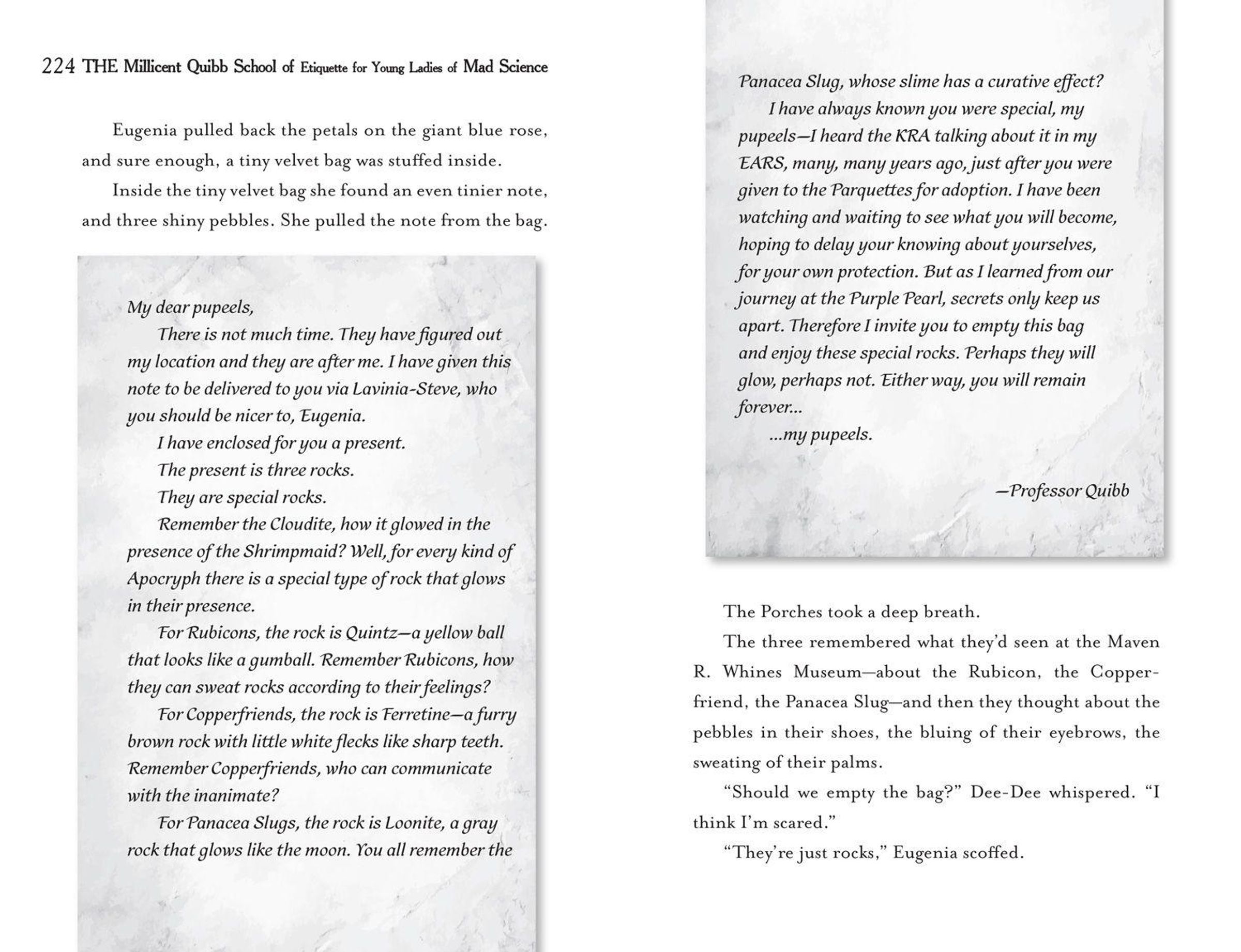 - The Millicent Quibb School of Etiquette for Young Ladies of Mad Science