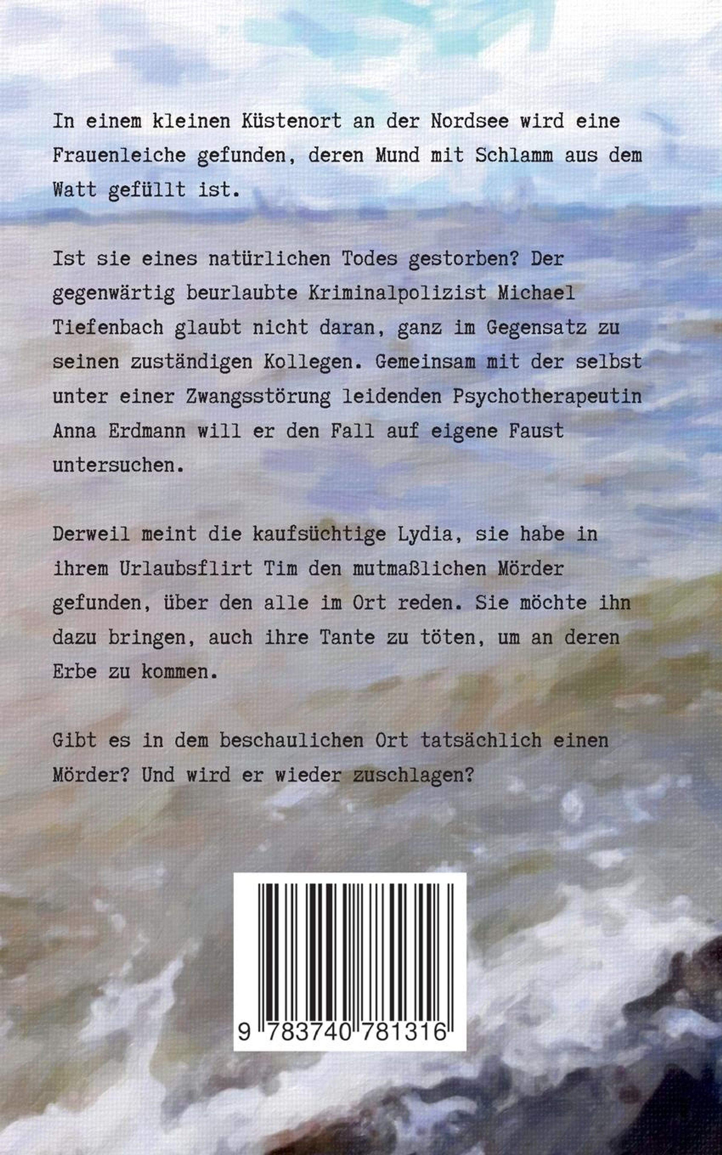 In einem kleinen Küstenort an der Nordsee wird eine Frauenleiche gefunden, deren Mund mit Schlamm aus dem Watt gefüllt ist. Ist sie eines natürlichen Todes gestorben? Der gegenwärtig beurlaubte Kriminalpolizist Michael Tiefenbach glaubt nicht daran, ganz im Gegensatz zu seinen zuständigen Kollegen. Gemeinsam mit der selbst unter einer Zwangsstörung leidenden Psychotherapeutin Anna Erdmann will er den Fall auf eigene Faust untersuchen. Derweil meint die kaufsüchtige Lydia, sie habe in ihrem Urlaubsflirt Tim den mutmaßlichen Mörder gefunden, über den alle im Ort reden. Sie will ihn dazu bringen, auch ihre Tante zu töten, um an deren Erbe zu kommen. Gibt es in dem beschaulichen Ort tatsächlich einen Mörder? Und wird er wieder zuschlagen?