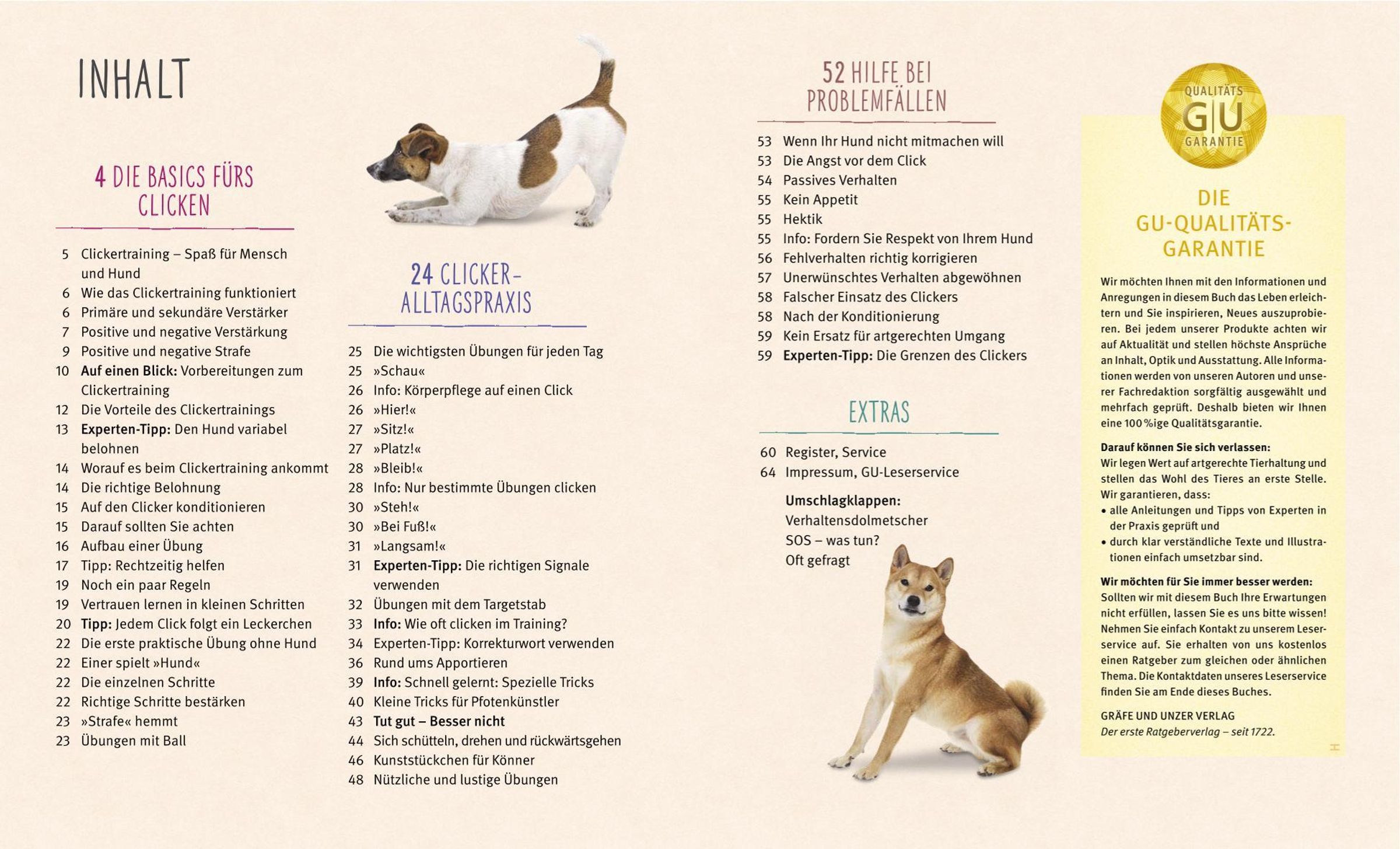 Wenn Sie mit dem Clicker arbeiten, kann Ihr Hund selbst und ohne Zwang herausfinden, was Sie von ihm möchten. Das Tolle am Clickertraining: Es ist leicht umsetzbar und macht dem Hund Spaß, gibt es doch anfangs nach jedem Click eine Belohnung für richtiges Verhalten. Und mit der Zeit bekommt allein das Klick-Geräusch für Ihren Hund dieselbe Bedeutung wie das Leckerli. Also ran an das Erlernen dieser Zaubermethode, die Ihnen nicht nur bei der Erziehung Ihres Vierbeiners hilft, sondern auch beim Trainieren kleiner Kunststücke Erfolg verspricht. Die erfahrene Hundetrainerin Katharina Schlegl-Kofler gibt Ihnen in diesem GU Tierratgeber Hunde-Clickertraining eine genaue Anleitung mit praktischen Übungen fürs Clickern. Zahlreiche Tipps helfen, Fehler von Anfang an zu vermeiden und das Training für Hund und Mensch gleichermaßen spannend zu gestalten.