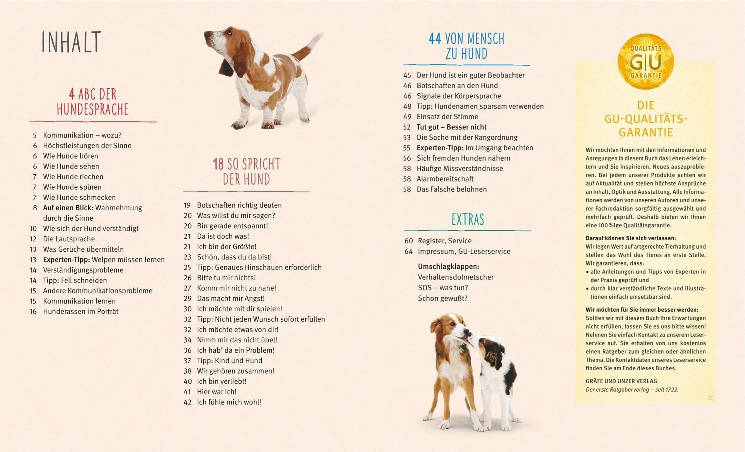 Schwanzwedeln, Ohrenaufstellen, Springen, Knurren: Unsere Hunde haben uns einiges zu sagen. Aber was genau? Lernen Sie doch einfach Hündisch! Denn nur, wenn Sie und Ihr Liebling die gleiche Sprache sprechen, funktioniert das Zusammenleben. Im neuen, komplett aktualisierten GU Tierratgeber Hundesprache erklärt Hundeexpertin Katharina Schlegl-Kofler anhand zahlreicher Fallbeispiele, wie Hunde untereinander und mit uns Menschen kommunizieren - und wie auch Sie sich Ihrem Vierbeiner auf Augenhöhe mitteilen können. Die Autorin gibt eine Fülle wertvoller Tipps, Sie das Verhalten und die Körpersprache Ihres Vierbeiners richtig. Der GU Verhaltensdolmetscher erklärt darüber die typischsten Verhaltensweisen von Hunden auf einen Blick. Im großen Online-Wissenstest können Sie abschließend überprüfen, wie gut Sie die Hundesprache bereits beherrschen.