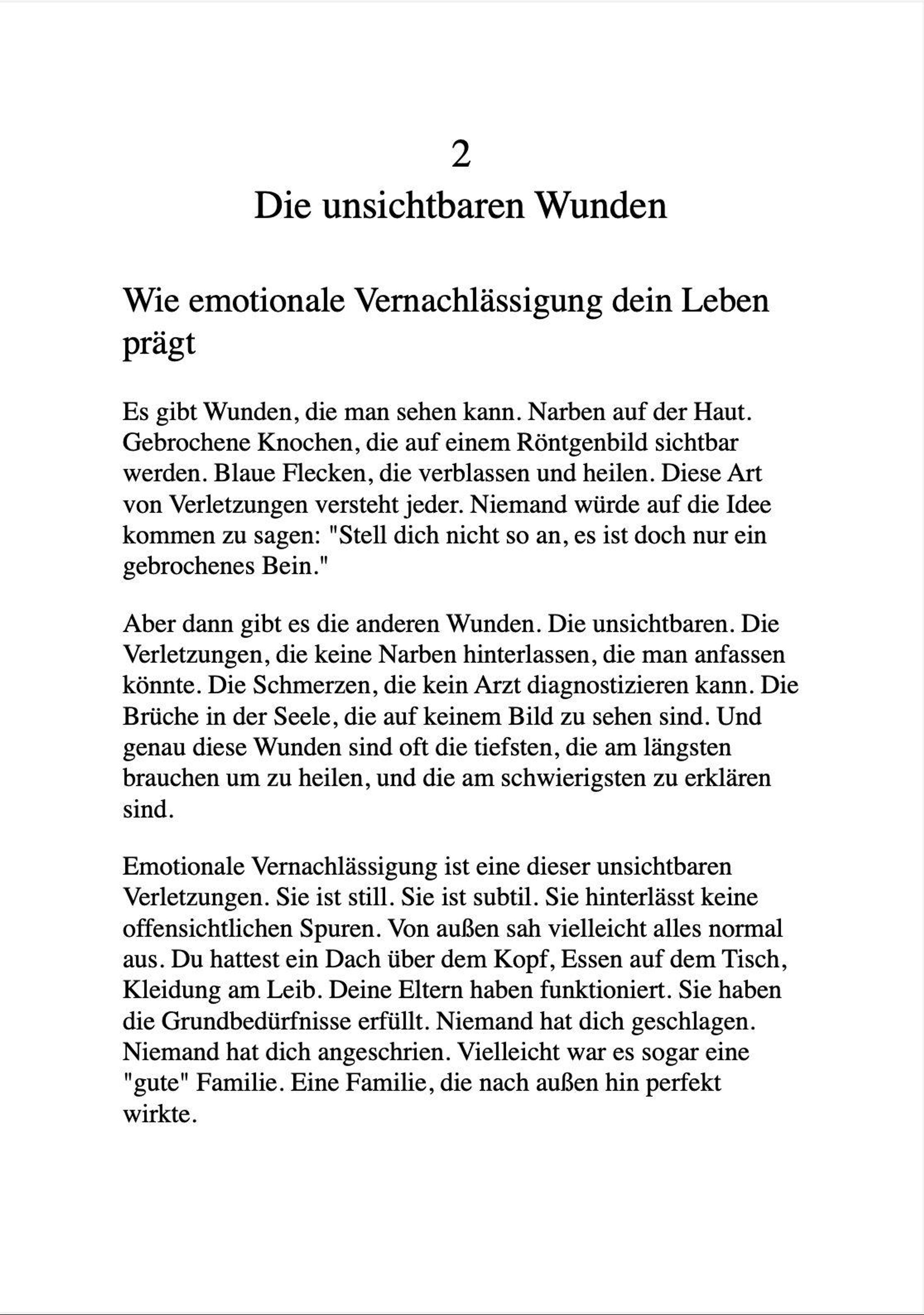 Dieses Buch ist kein weiterer Ratgeber, der dir einredet, du sollst vergeben und vergessen. Es wird deine Erfahrungen nicht kleinreden oder mit Positivität übertünchen. Es wird dir nicht sagen, dass alles gut wird, wenn du nur positiv genug denkst. Stattdessen gibt es dir die Erlaubnis, die du so dringend brauchst: Die Erlaubnis, wütend zu sein. Traurig zu sein. Zu trauern um die Eltern, die du nie hattest. Um die Kindheit, die dir geraubt wurde. Und die Erlaubnis, trotz allem - oder gerade deswegen - weiterzugehen und endlich dein eigenes Leben zu leben.