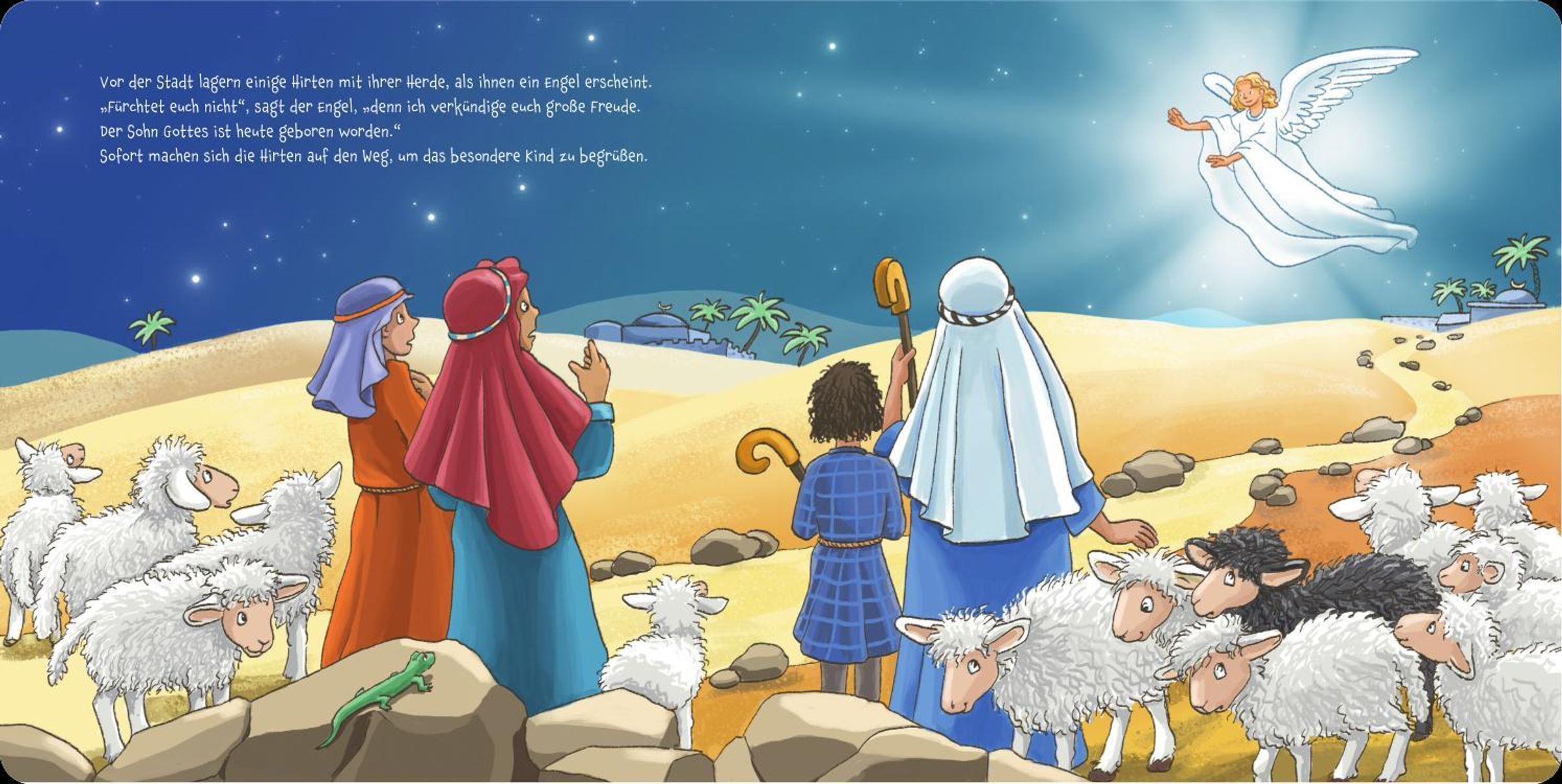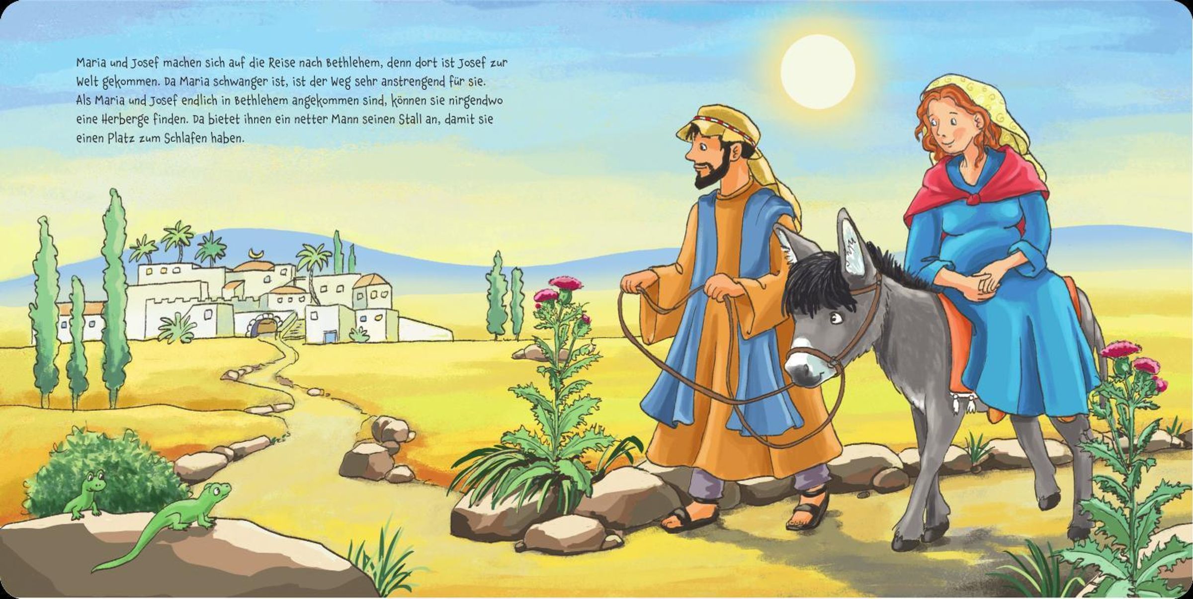 In diesem Büchlein wird die biblische Weihnachtsgeschichte für die Kleinsten erzählt und stimmungsvoll illustriert: Von der Verkündigung des Engels, Maria und Josefs Reise nach Bethlehem bis hin zur Geburt des Jesuskindes.
