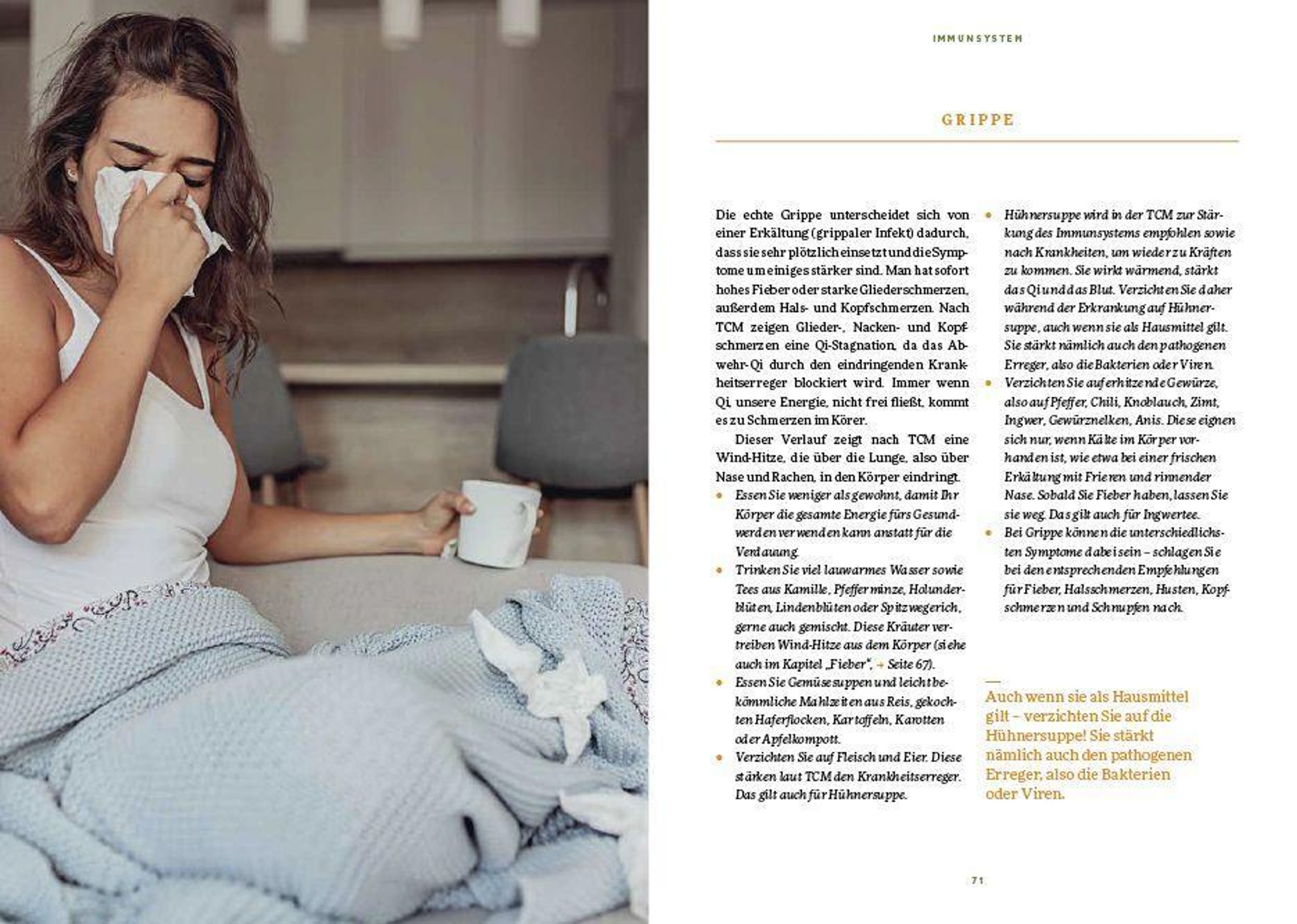 . Ernährungstipps und Heilnahrung für die häufigsten Erkrankungen von Erkältungen über Fieber bis zu Bronchitis und Grippe.