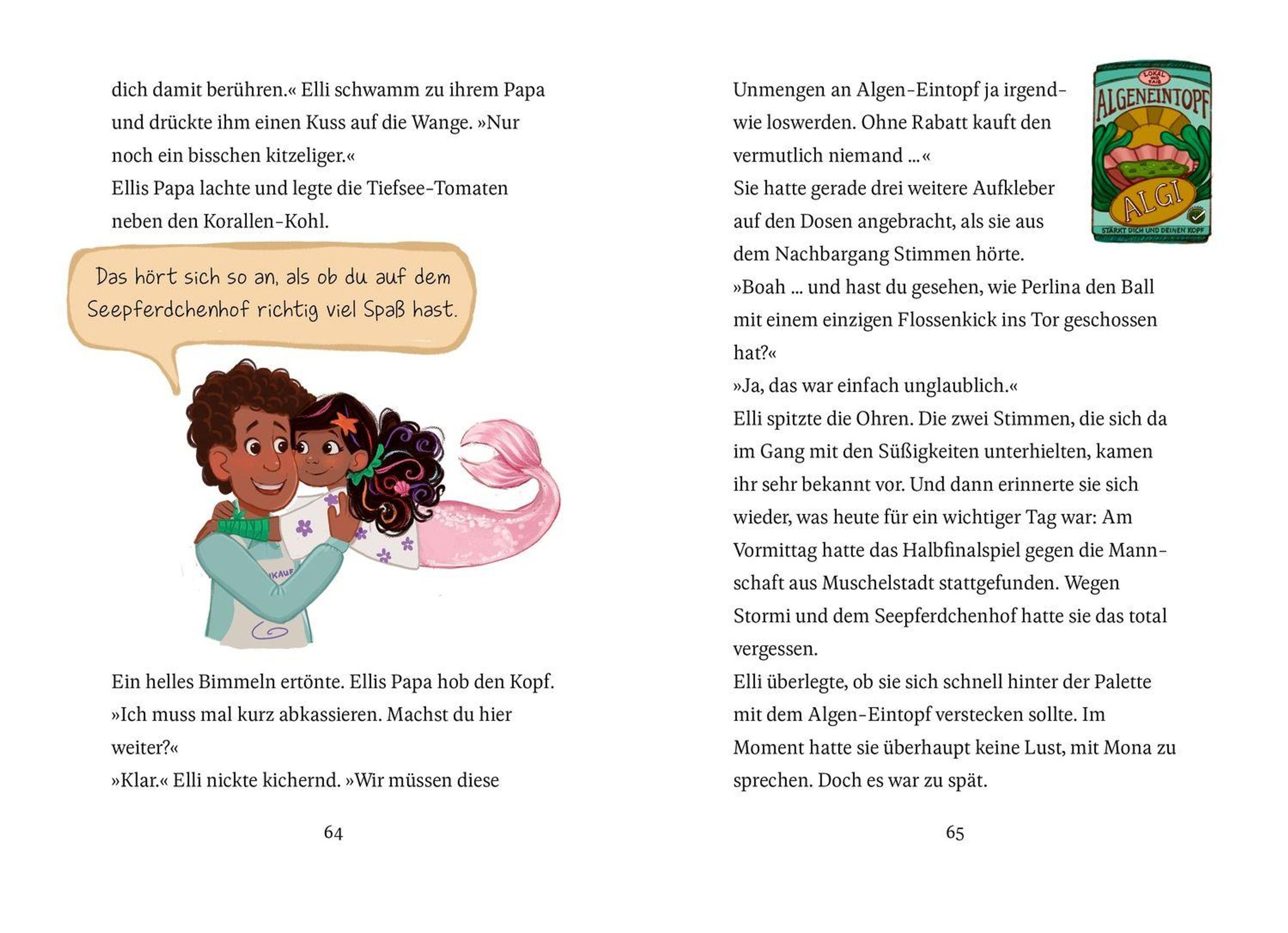Als sich das Meermädchen Elli die Hand verstaucht, ist sie sehr traurig: Jetzt kann sie nicht mehr mit ihrer Wasserball-Mannschaft trainieren. Elli fühlt sich ausgeschlossen. Doch dann begleitet sie ihren Klassenkameraden Maris auf den Seepferdchenhof. Dort begegnet sie dem Rennseepferdchen Stormi, das von seinem Besitzer schlecht behandelt wurde und sein Vertrauen zu Meermenschen verloren hat. Elli gelingt es, mit Stormi Freundschaft zu schließen. Noch nie hat sie sich so glücklich gefühlt wie auf dem Rücken des süßen Seepferdchens.