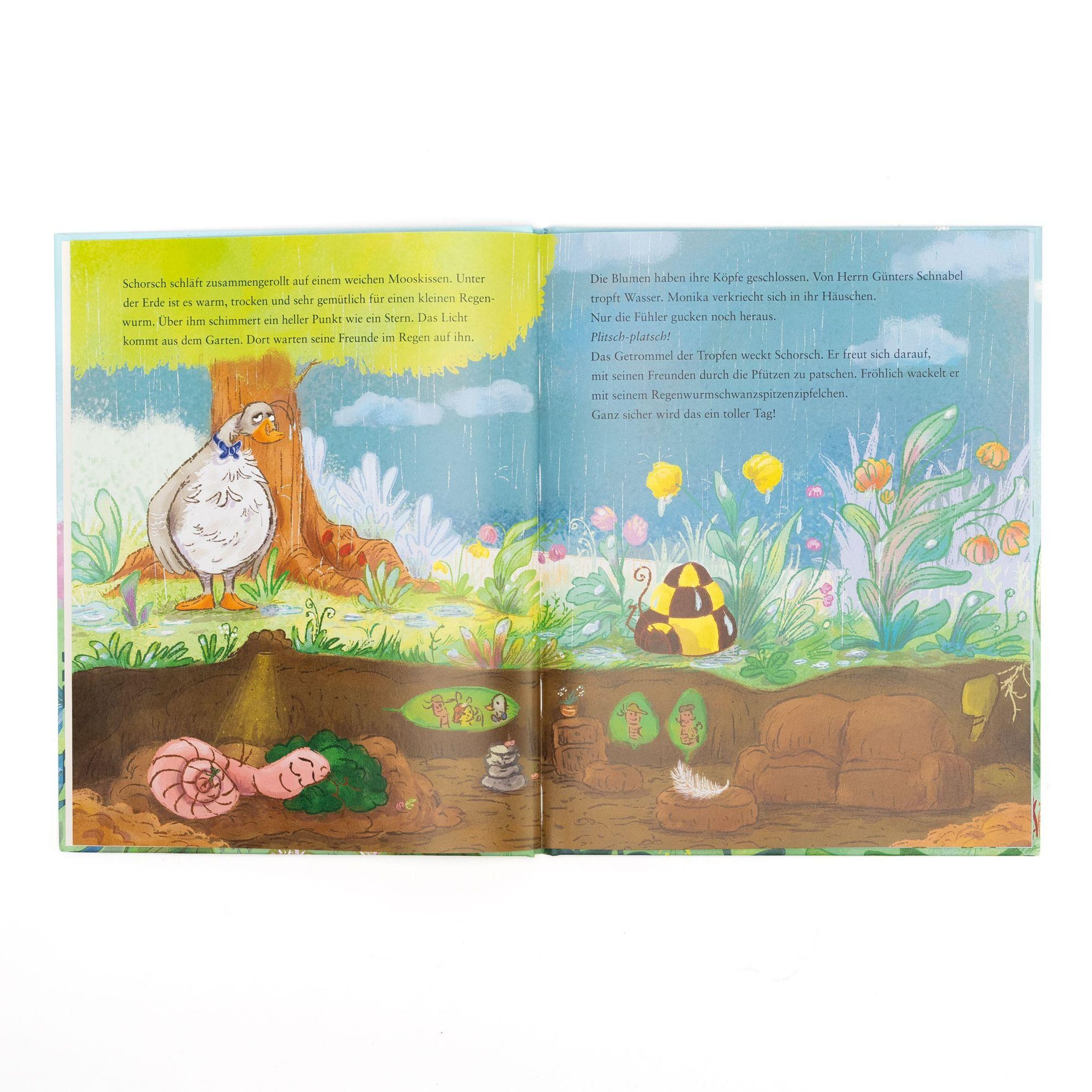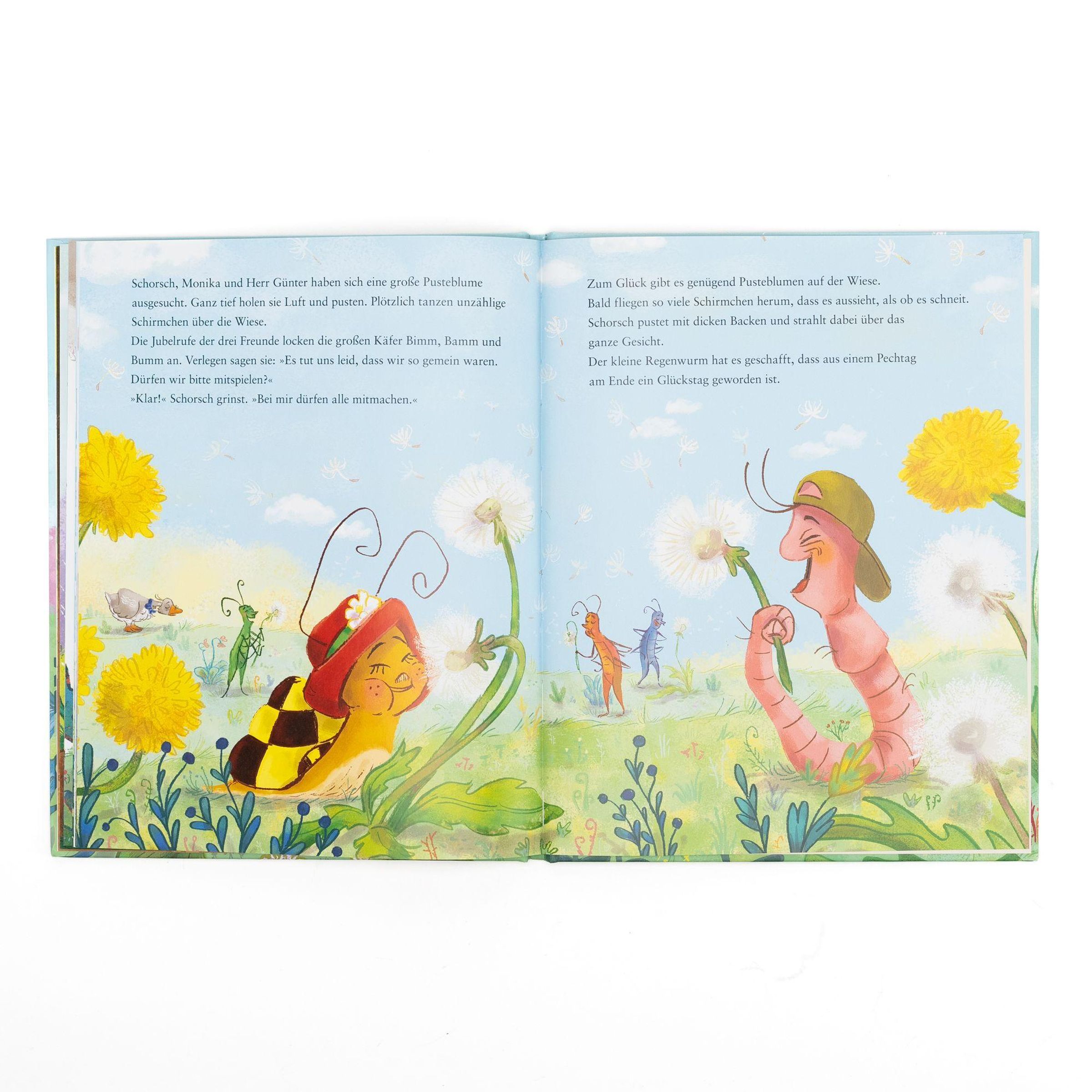 Heute hat Regenwurm Schorsch einen richtigen Pechtag! Ständig geht alles schief: Er stößt sich den Kopf, seine Kappe fällt in den Dreck, und dann lachen ihn auch noch die großen Käfer aus. Schorschs Laune wird immer schlechter, bis er schließlich ganz wütend, aber auch furchtbar traurig ist. Zum Glück bemerkt Monika Häuschen, dass mit ihrem besten Freund etwas nicht stimmt. Sie tröstet Schorsch, und auch der kluge Herr Günter hilft ihm. Als der Tag mit einem richtig fröhlichen Abend endet, erkennt Schorsch: Alles ist nur noch halb so schlimm, wenn man gute Freunde hat.