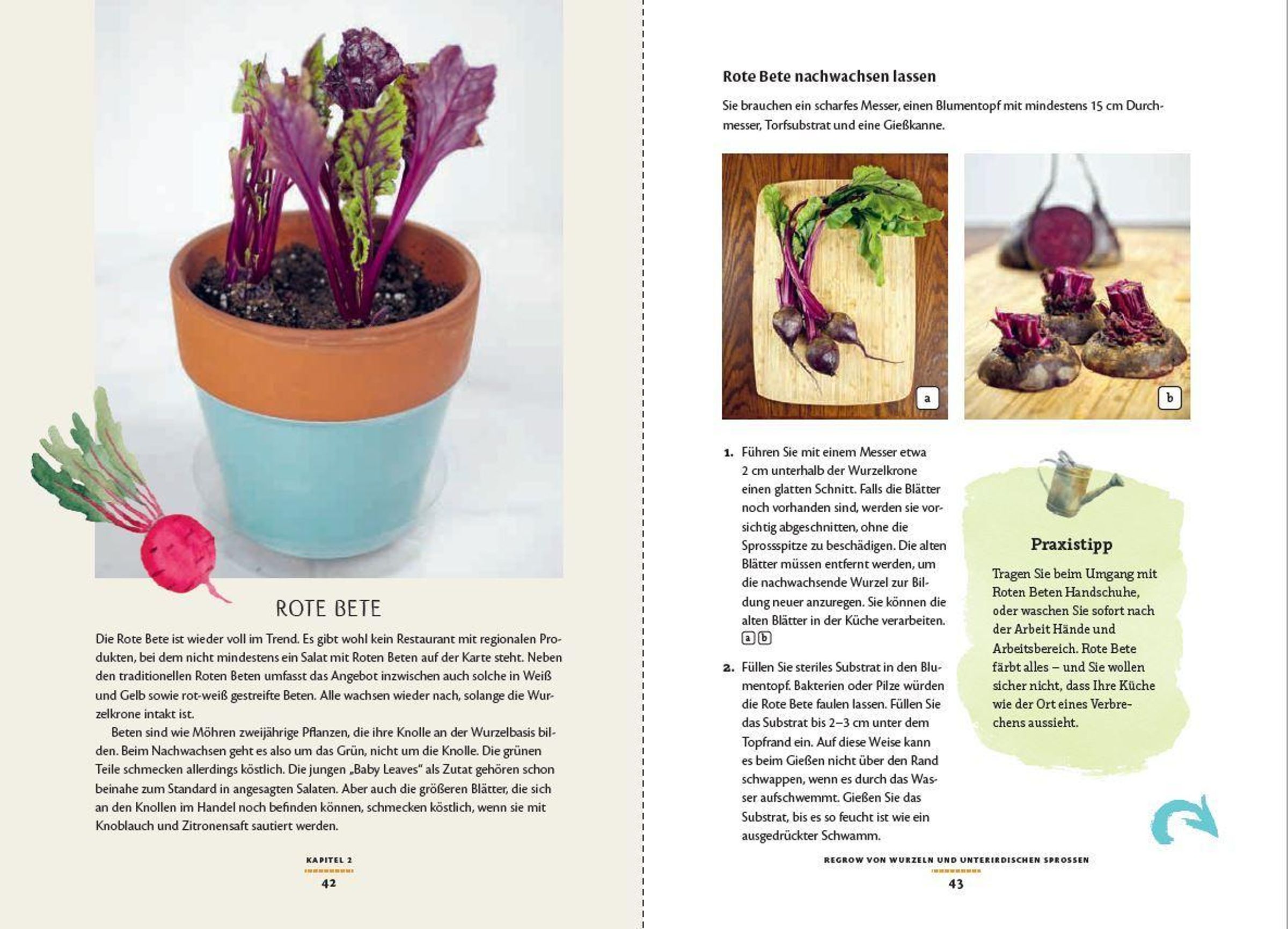 Aus Avocadokernen, Salatstrünken und 25 anderen Gemüseresten lassen sich mit wenig Aufwand und dem nötigen Know-how neue Pflanzen ziehen. Schritt-für-Schritt-Anleitungen zeigen, wie es geht: Ein Blumentopf oder Wasserglas, Wärme und die richtige Pflege, und schon wachsen auf dem Fensterbrett, dem Balkon oder der Terrasse Samen, Wurzeln, Stängel oder Blätter zu neuer Ernte heran.
