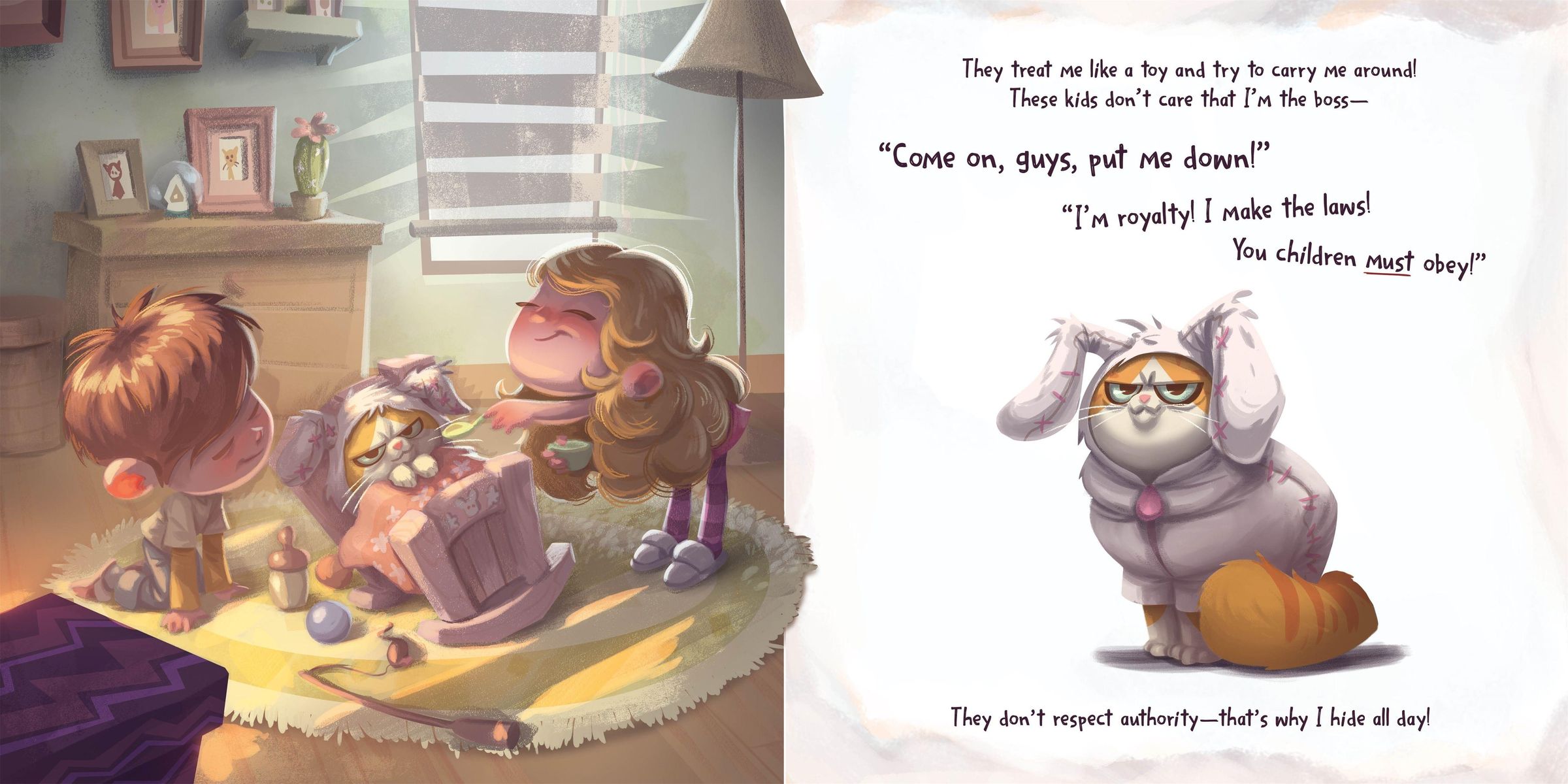 The family cat has a LOT to get off her chest. Life with children can be . . . challenging . Between their loud shrieks, dress-up games, and bath-time nonsense, she can't take any more of these little ones!