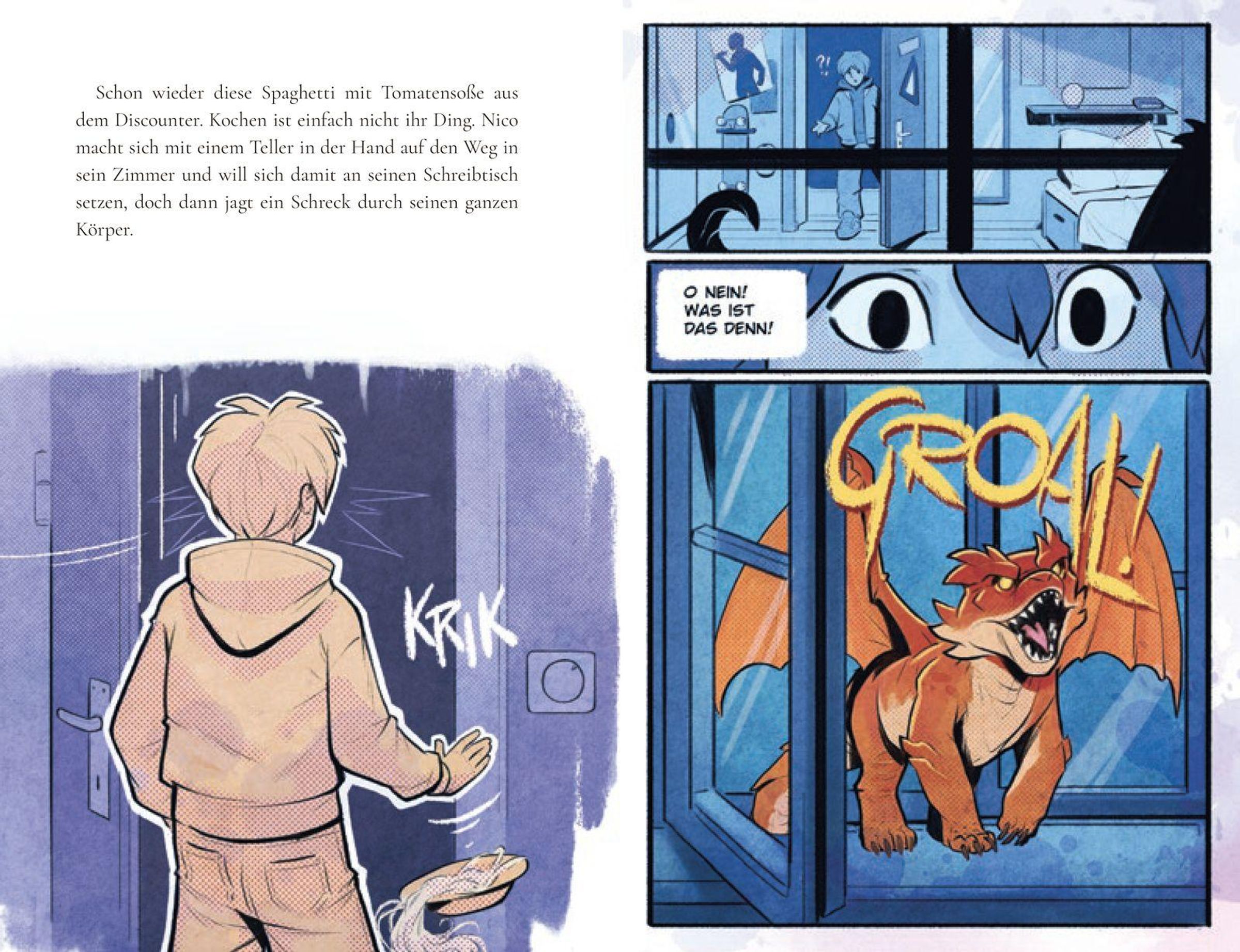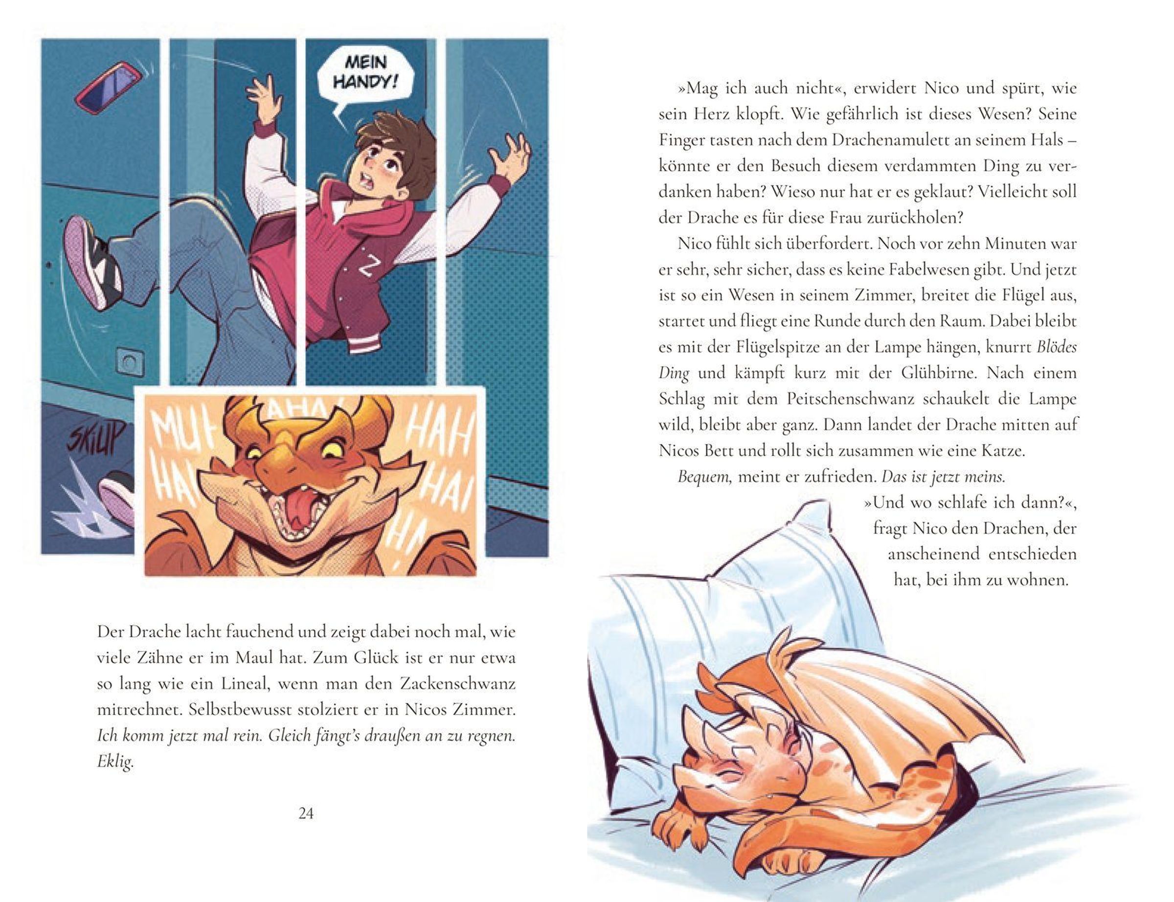 Doch dann sitzt plötzlich ein waschechter Drache auf seiner Fensterbank! Daimon ist zwar nicht besonders groß, hat aber krasse Sprüche drauf. Mutig und frech stellt er sich Nicos Widersachern entgegen und sorgt mit seinem Feueratem für ordentlich Chaos. Aber Daimon ist nicht das einzige magische Wesen, das es in die Menschenwelt verschlagen hat und schon bald werden Nico und er verfolgt. Kann Nico seinem neuen Freund helfen?