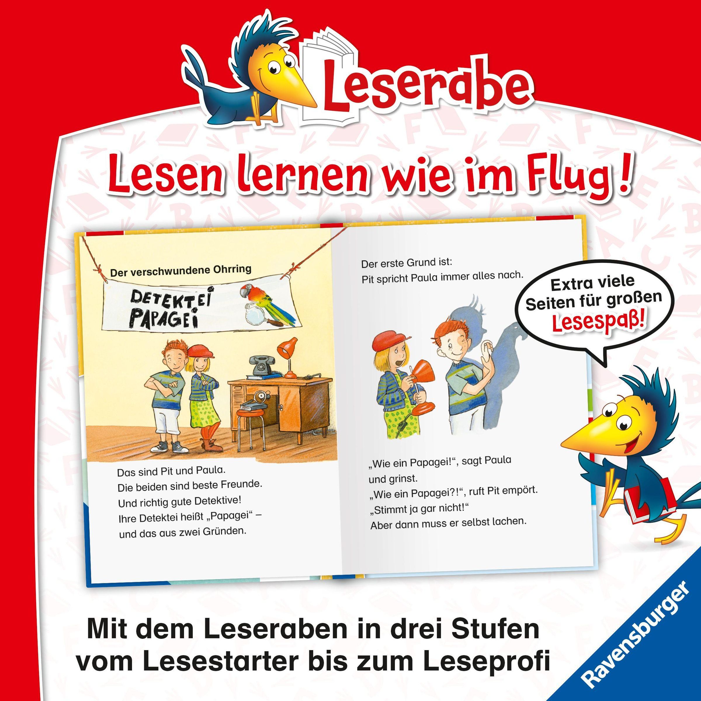 Lesen lernen mit dem Ravensburger Leseraben. Die 1. Lesestufe spricht Kinder an, die mit dem Leselern-Prozess begonnen haben, und bietet ideale Bücher für Leseanfänger. Kurze Textabschnitte, einfacher Wortschatz sowie die extragroße Fibelschrift erleichtern Kindern das Lesen. Leserätsel für Leseanfänger und spannende Geschichten machen das Lesenlernen zu einem echten Vergnügen.