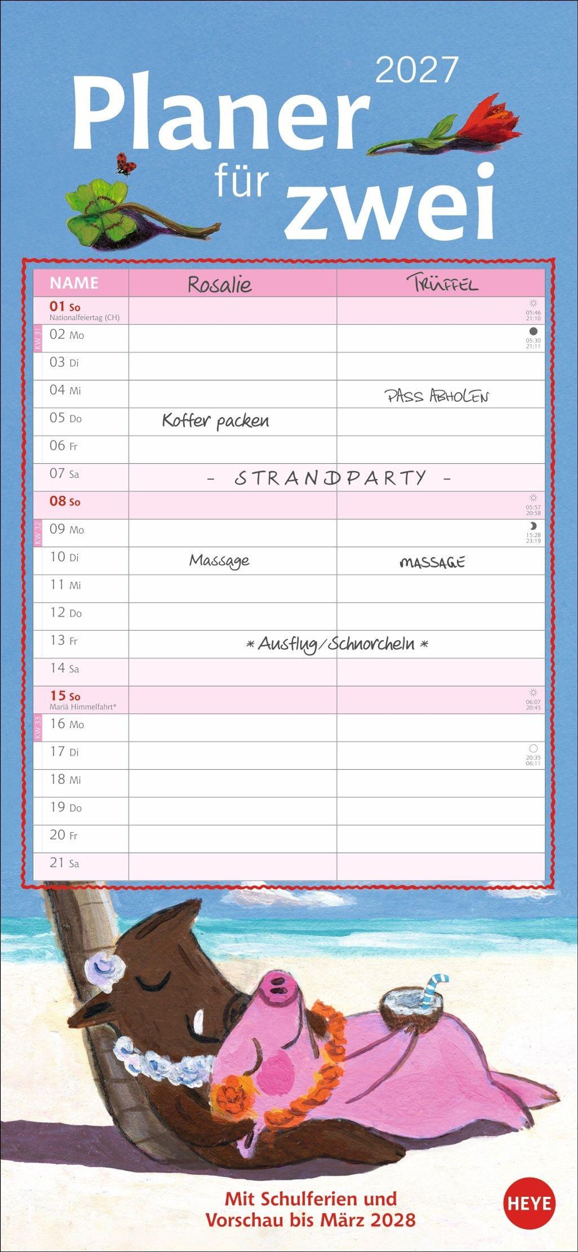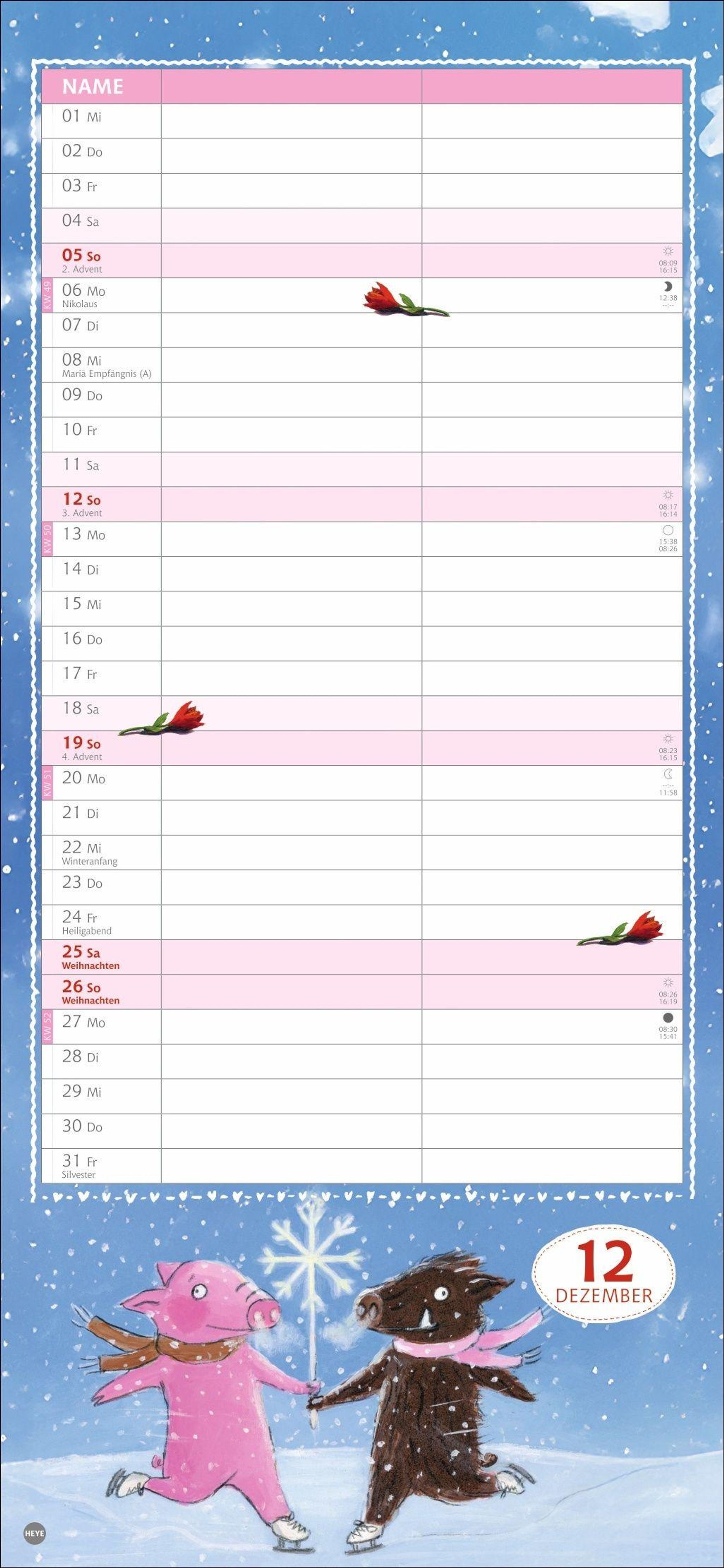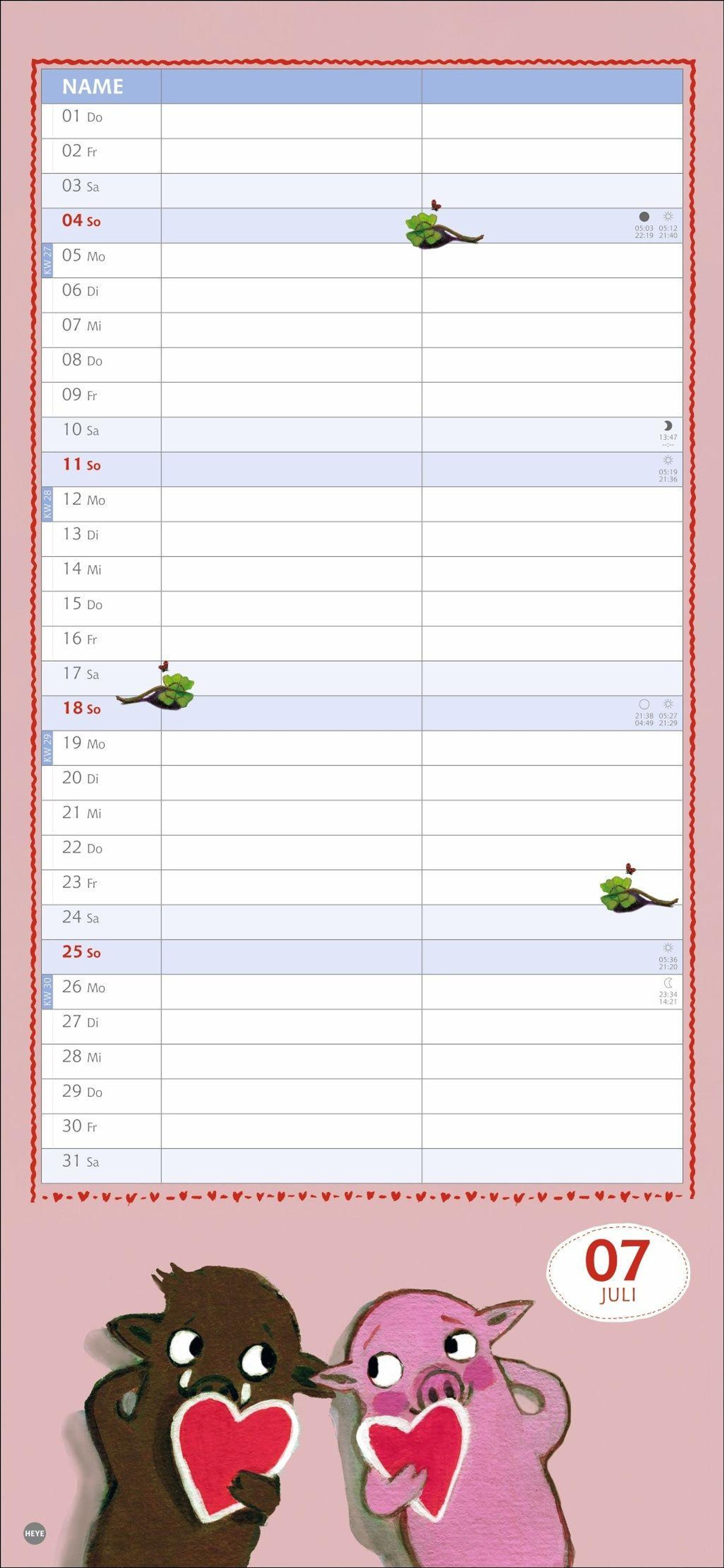 - Wandplaner für 2. Partnerkalender mit 2 Spalten. Terminkalender mit niedlichen Illustrationen des bekannten Schweine-Duos. Wandkalender für 2 Personen