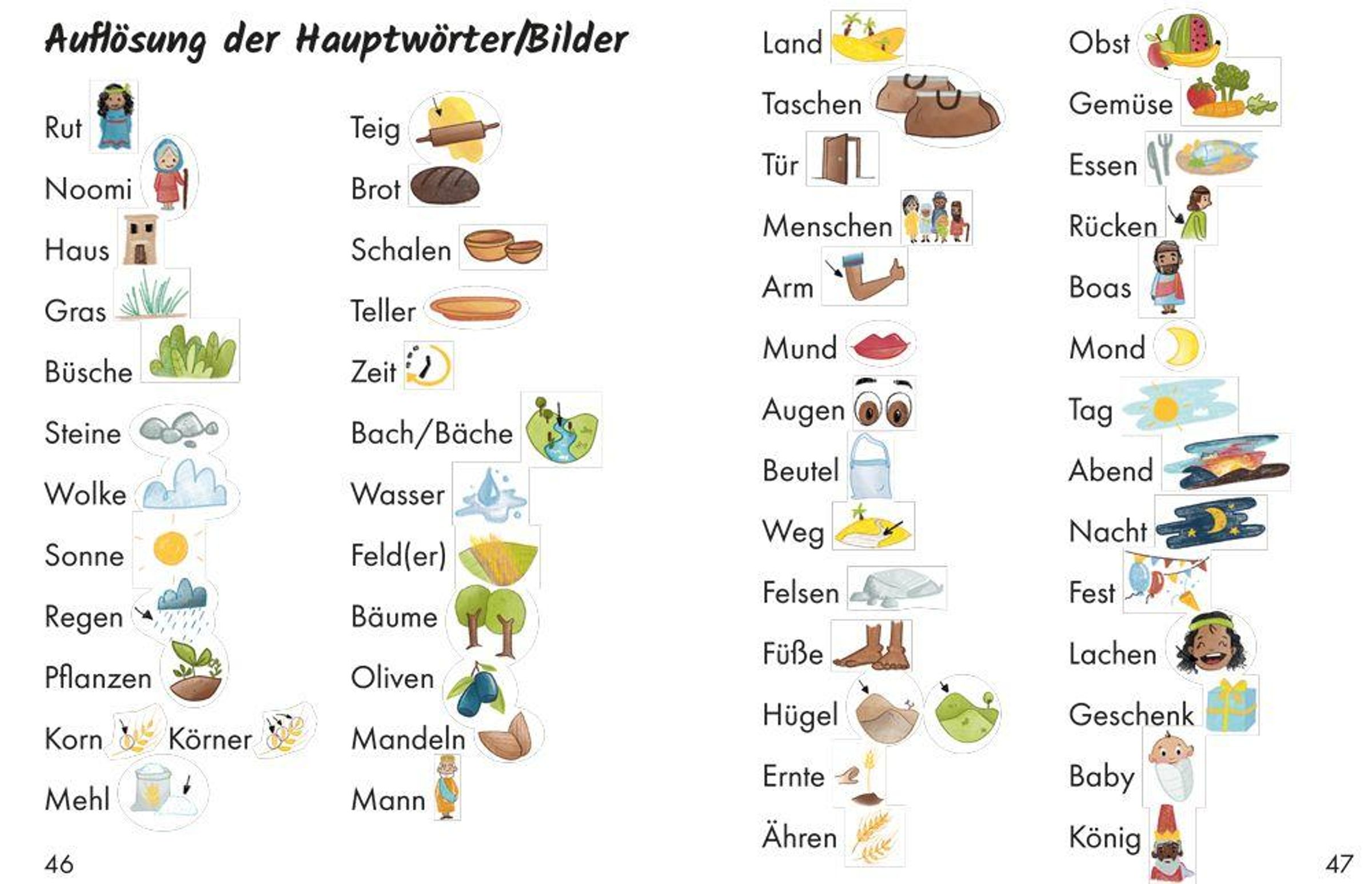 Aus frischer Perspektive wird die biblische Geschichte von Rut für den Leseanfang (ab 5 Jahren) nacherzählt. Die wichtigsten Hauptwörter werden im Text durch Bilder ersetzt, sodass Eltern und Kinder die Geschichte gemeinsam entdecken.