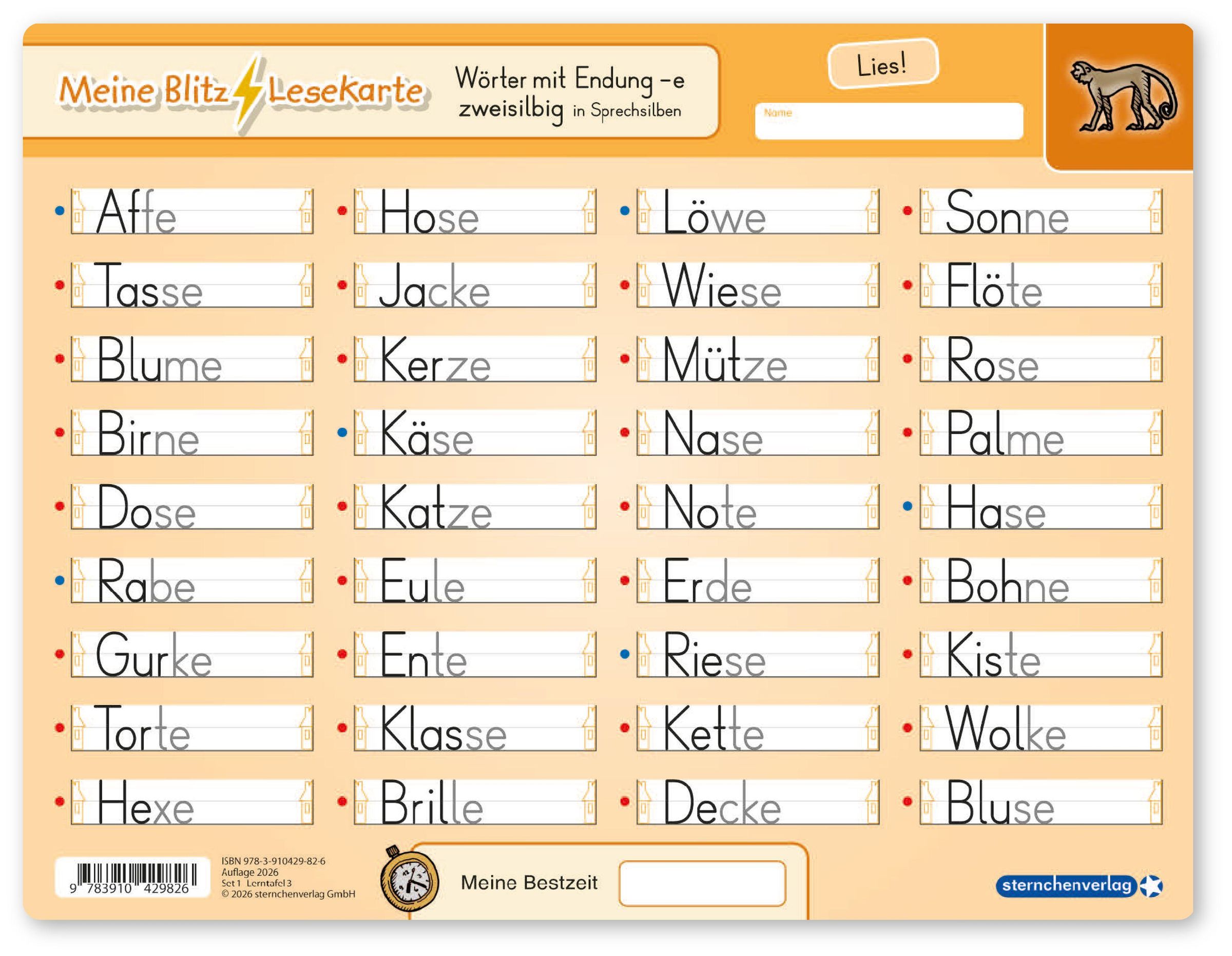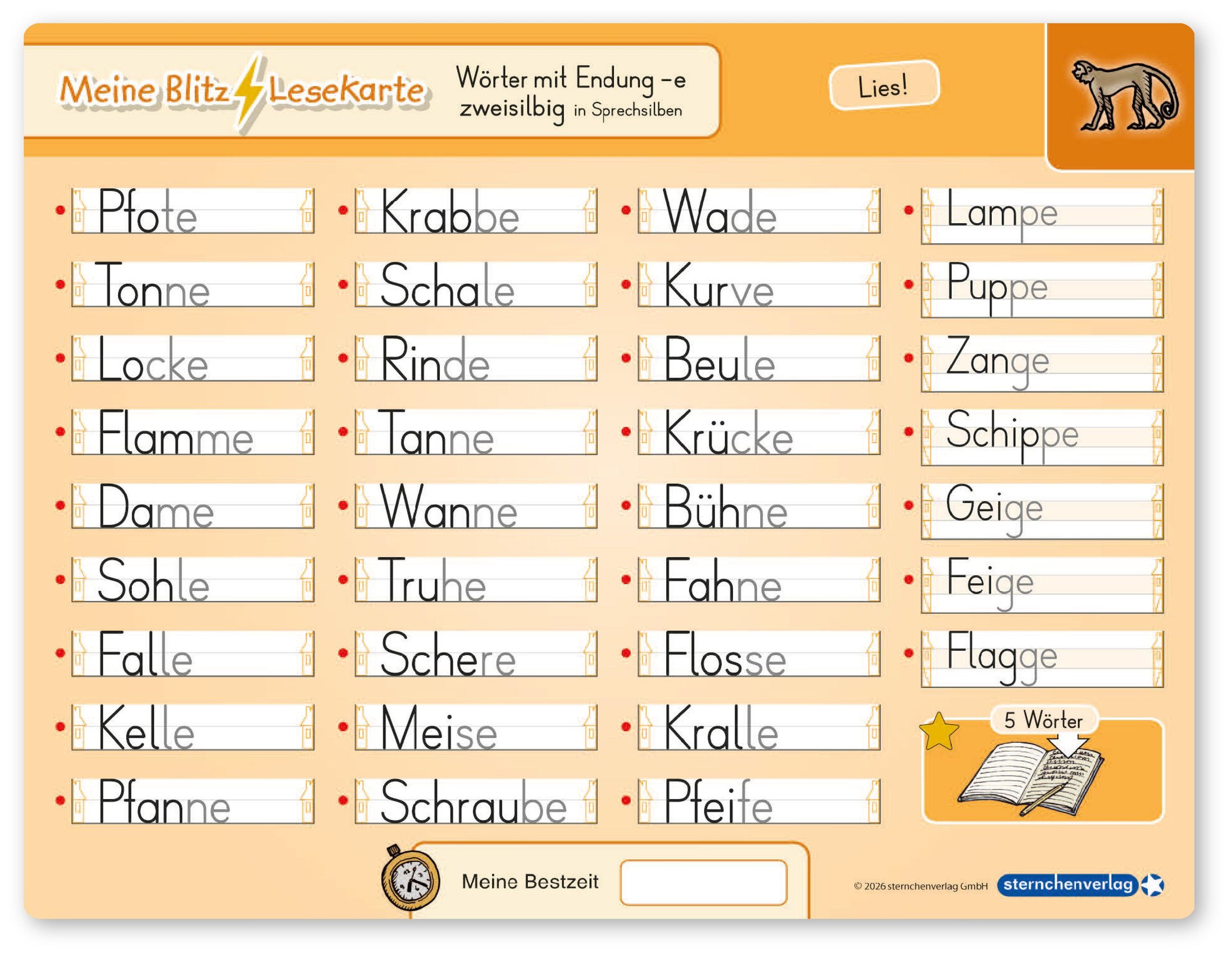 - Karte: Wörter mit Endung -e , zweisilbig