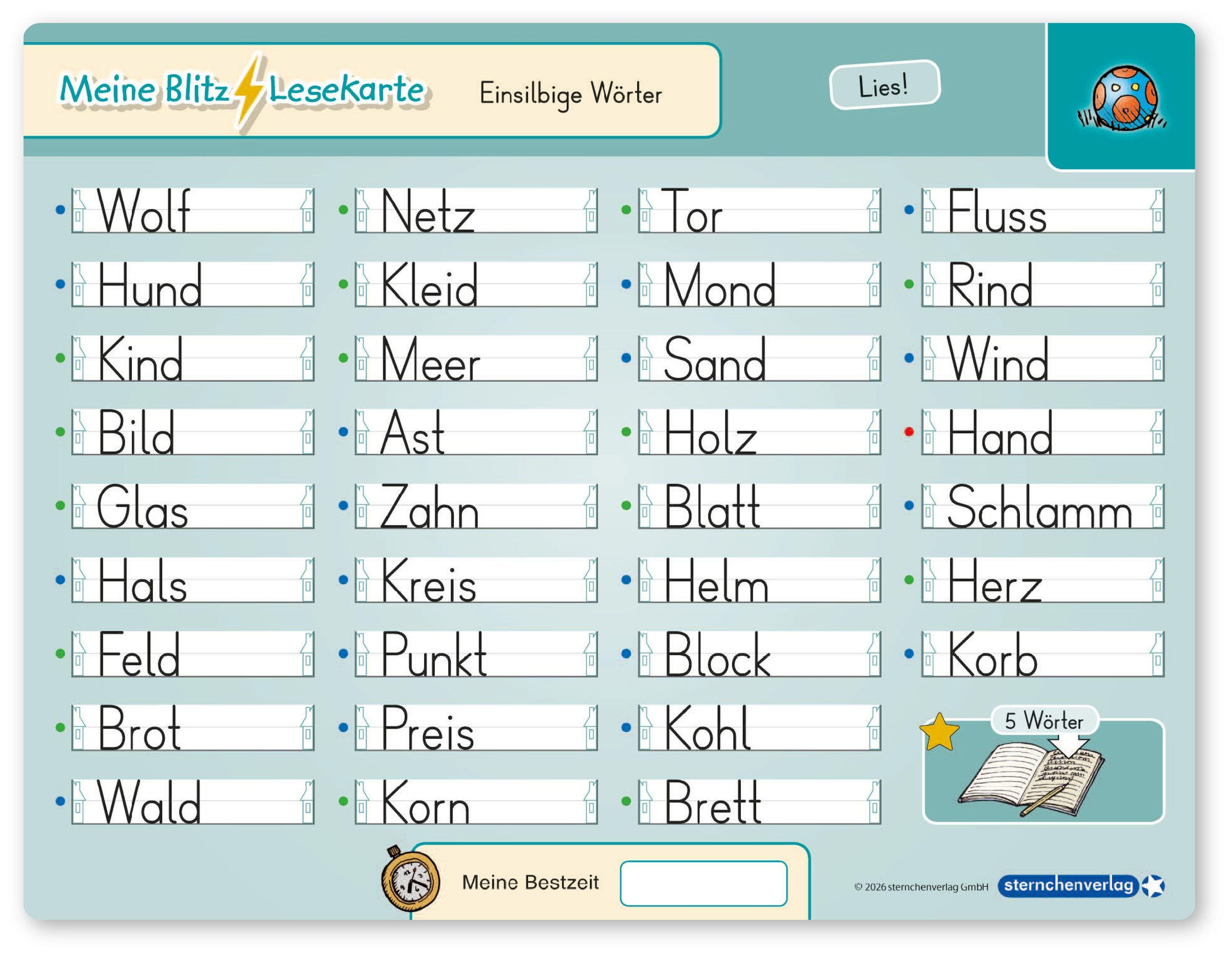 - Karte: Einsilbige Wörter