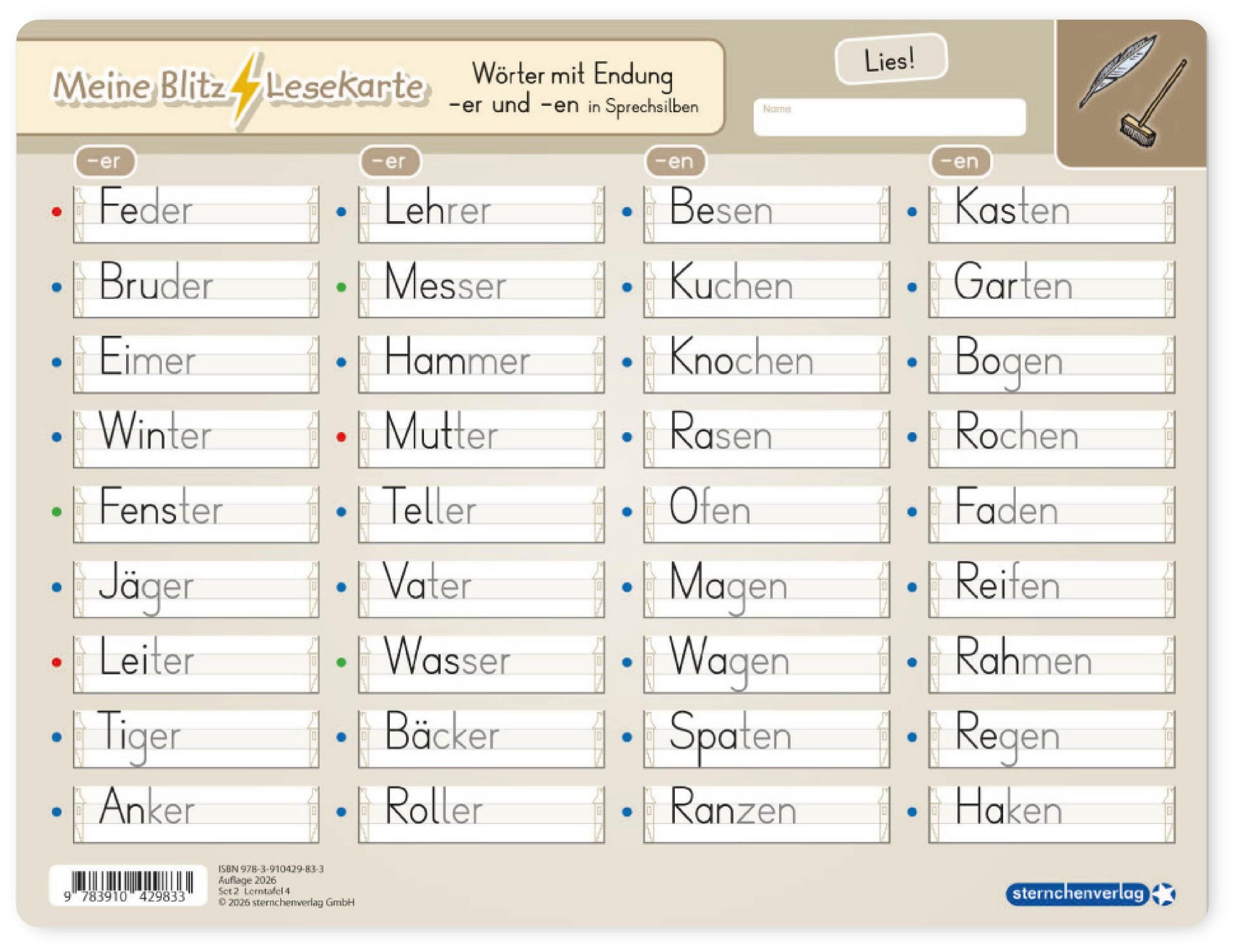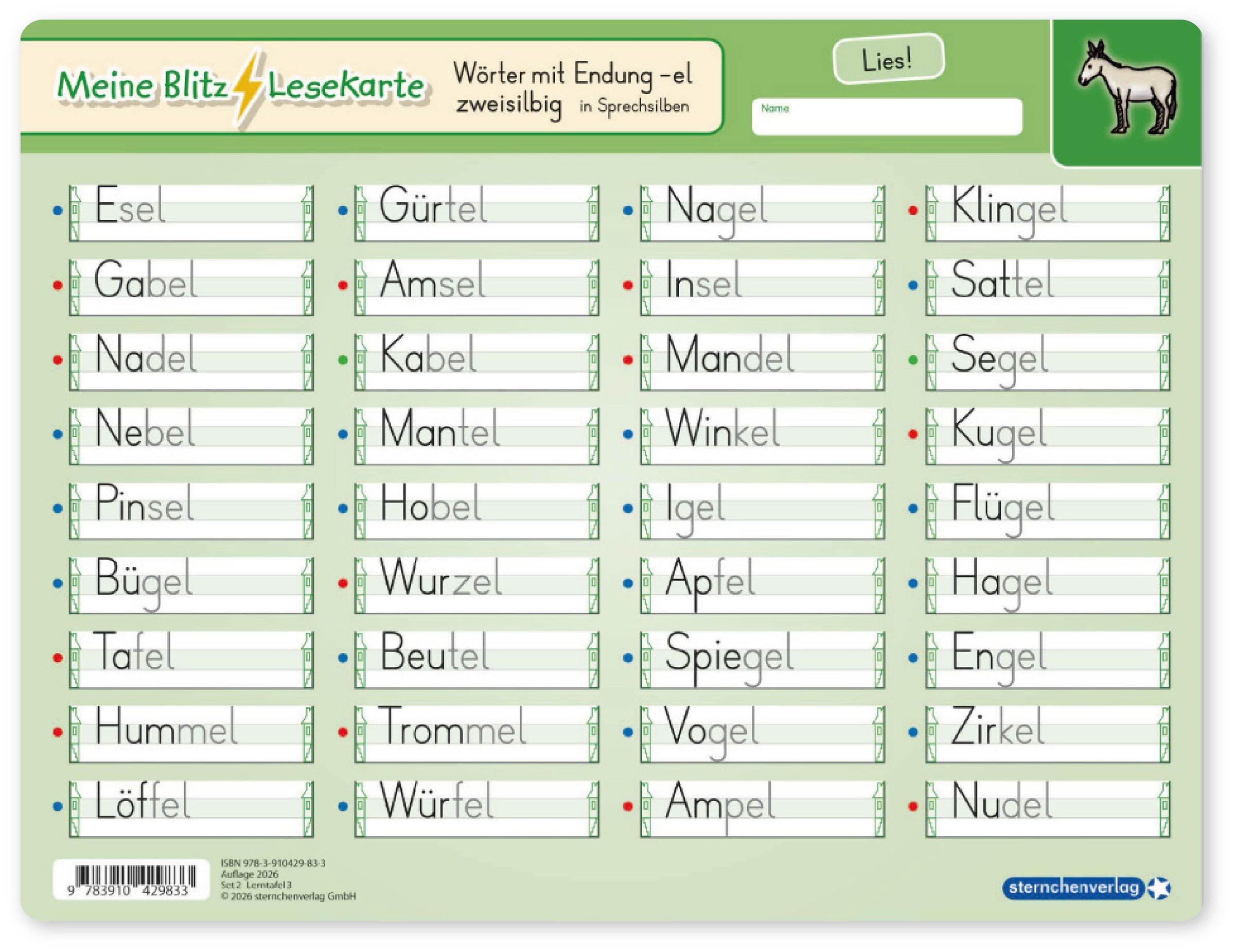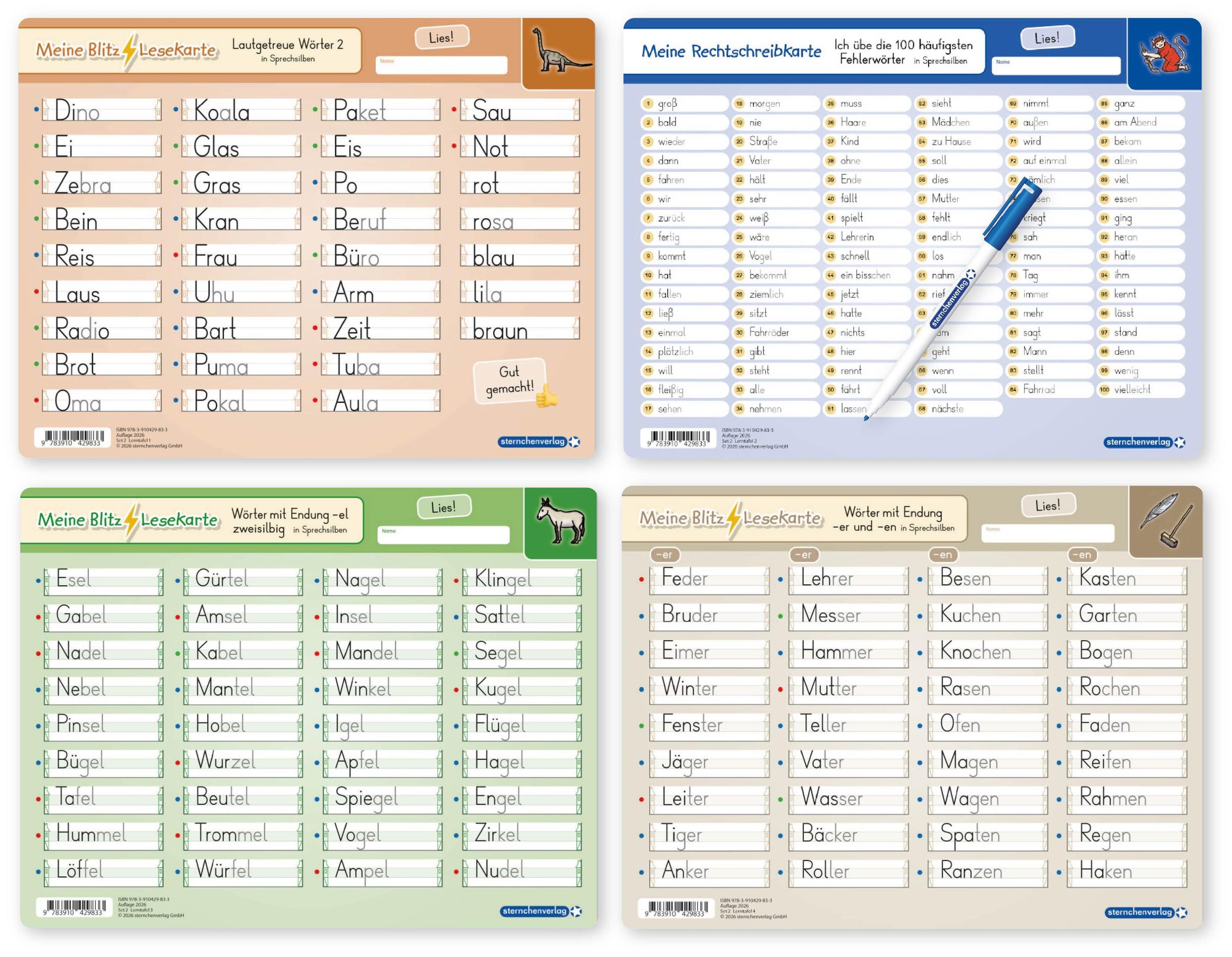 Meine Blitzlesekarten Set 2 - 4 Lerntafeln mit Stift zur Leseförderung