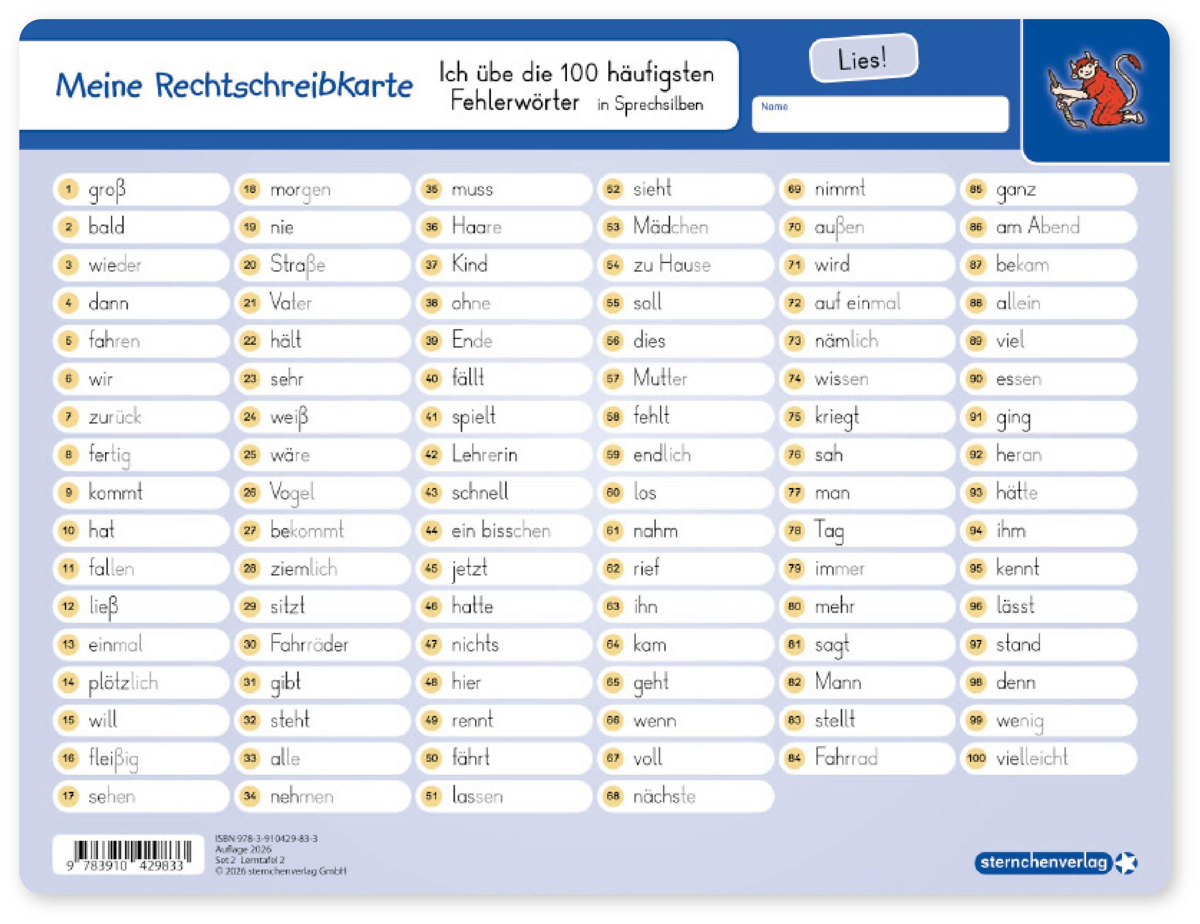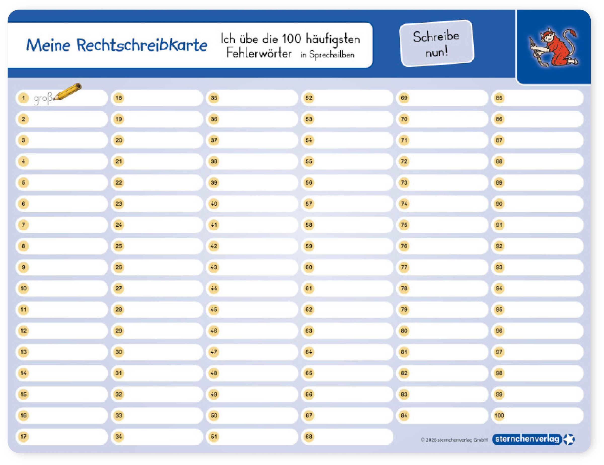 Karte: Ich übe die 100 häufigsten Fehlerwörter