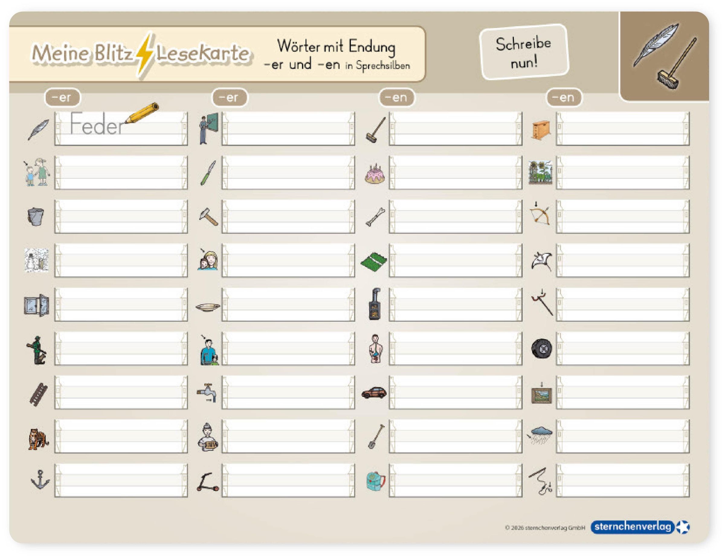 - wiederbeschreibbare Lernvorlagen für die 1. bis 3. Klasse