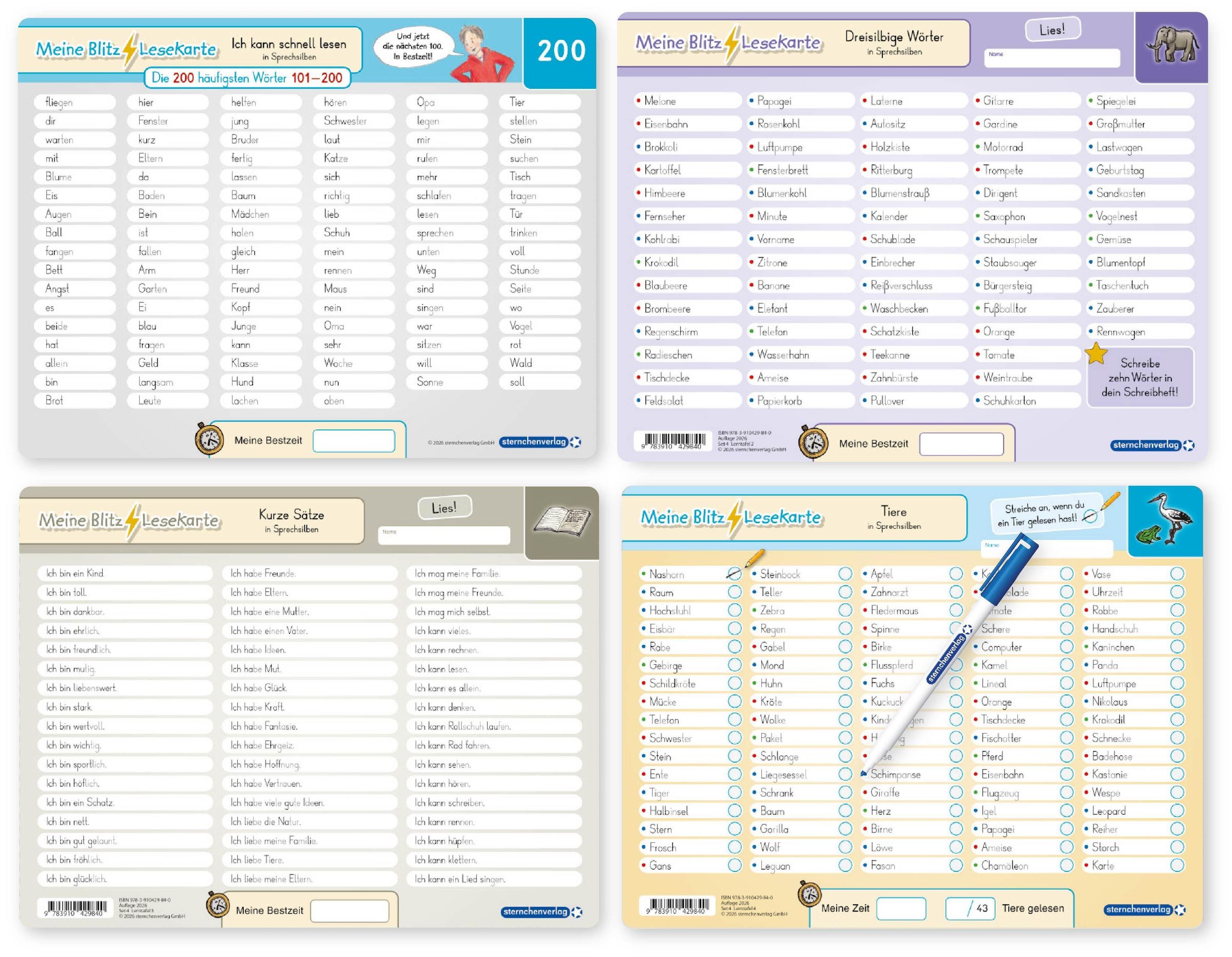 Meine Blitzlesekarten Set 4 - 4 Lerntafeln mit Stift zur Leseförderung