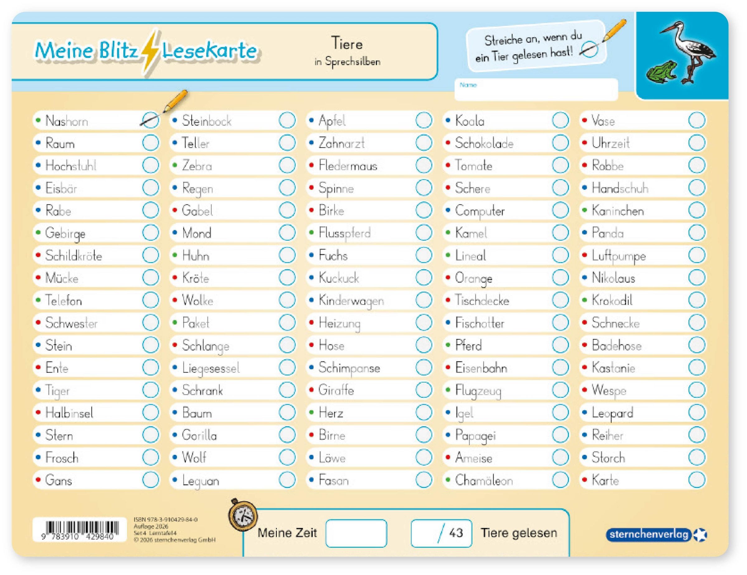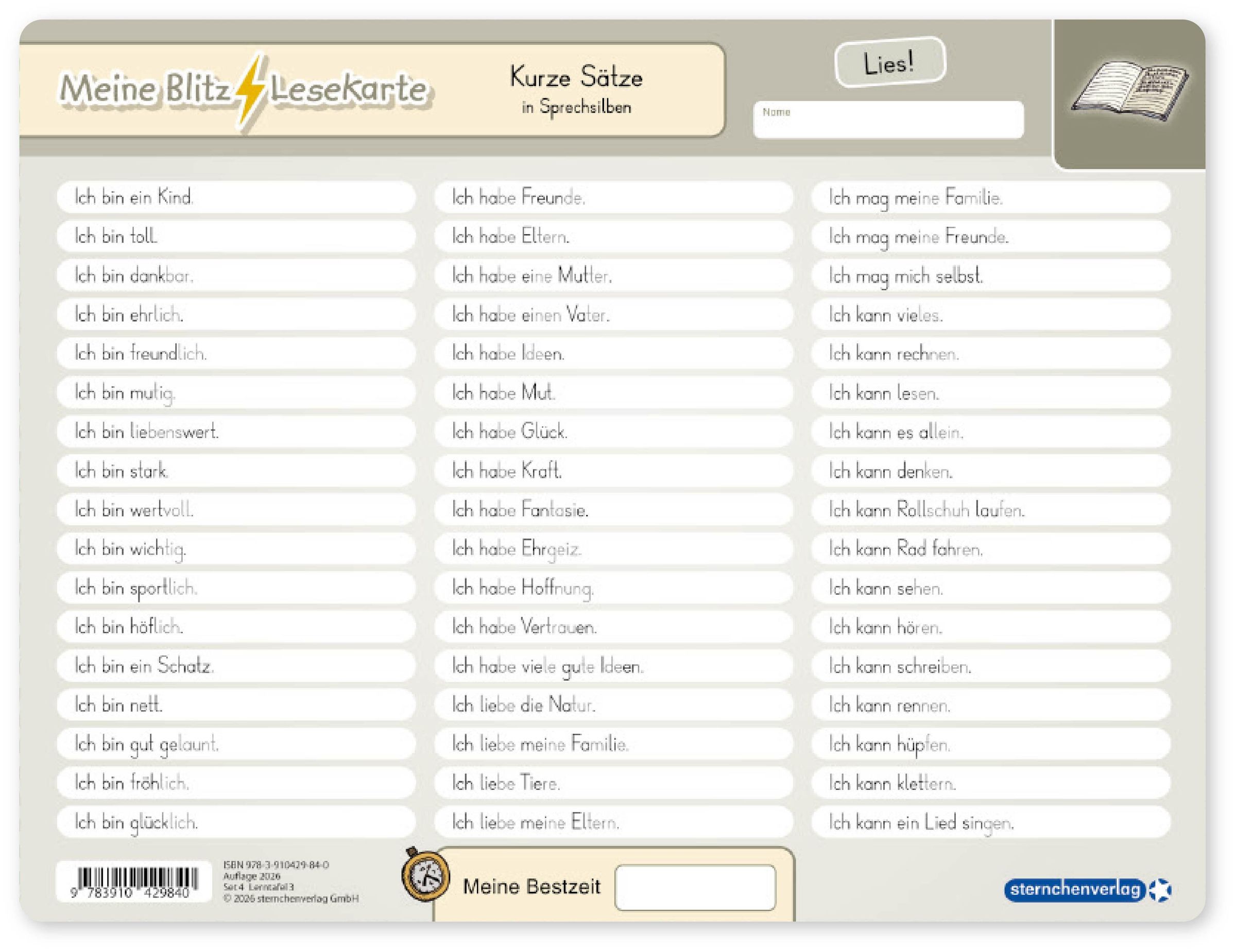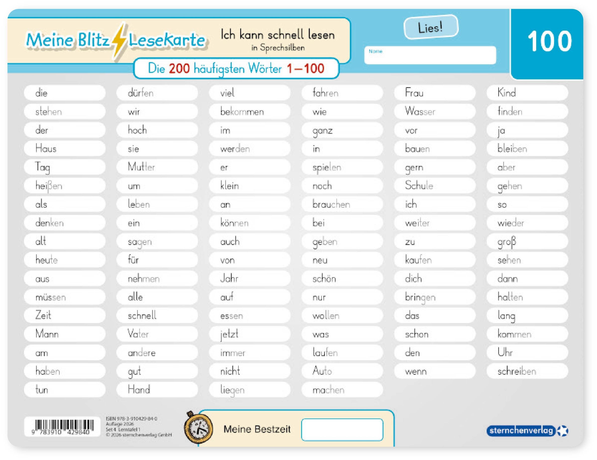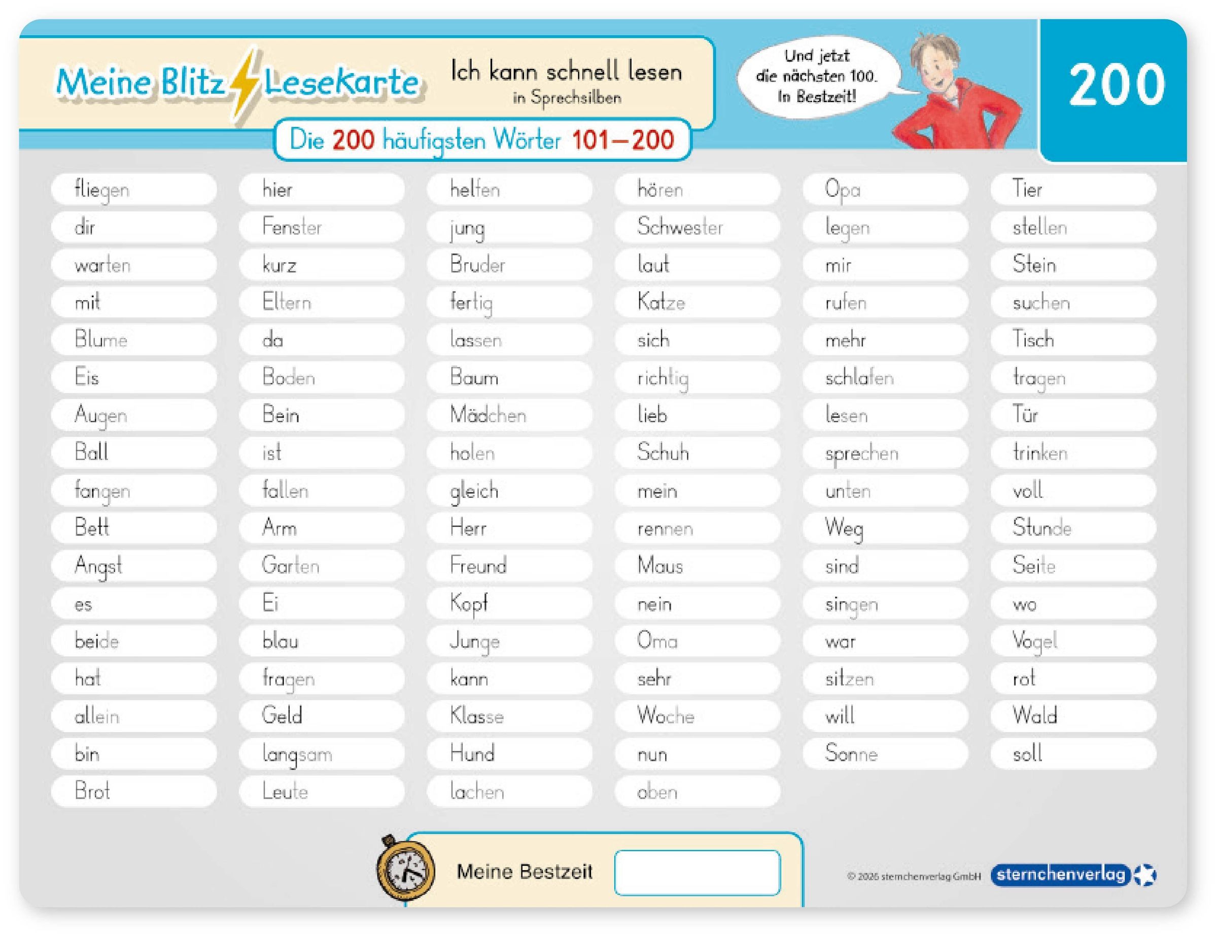 - Karte: Ich kann schnell lesen - Die 200 häufigsten Wörter