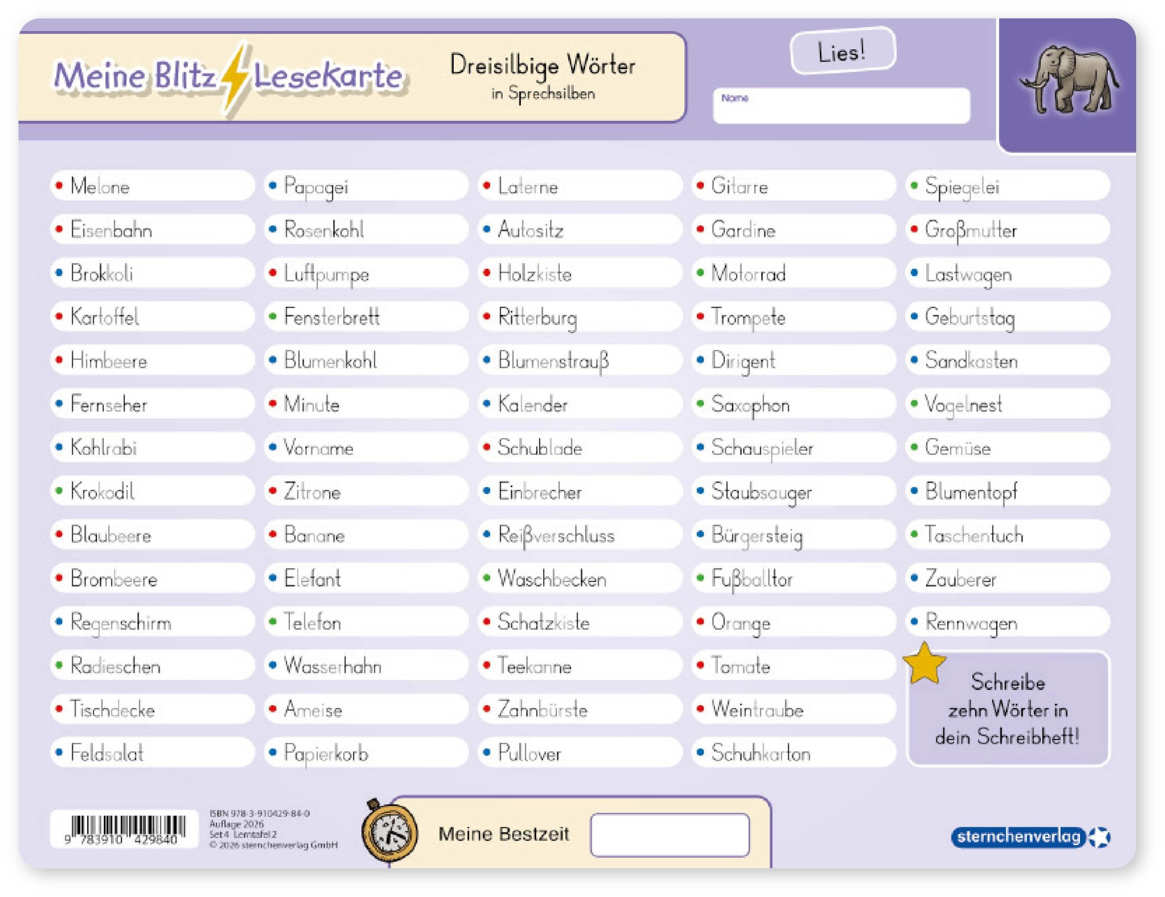 - Karte: Dreisilbige Wörter / Sehr lange Wörter
