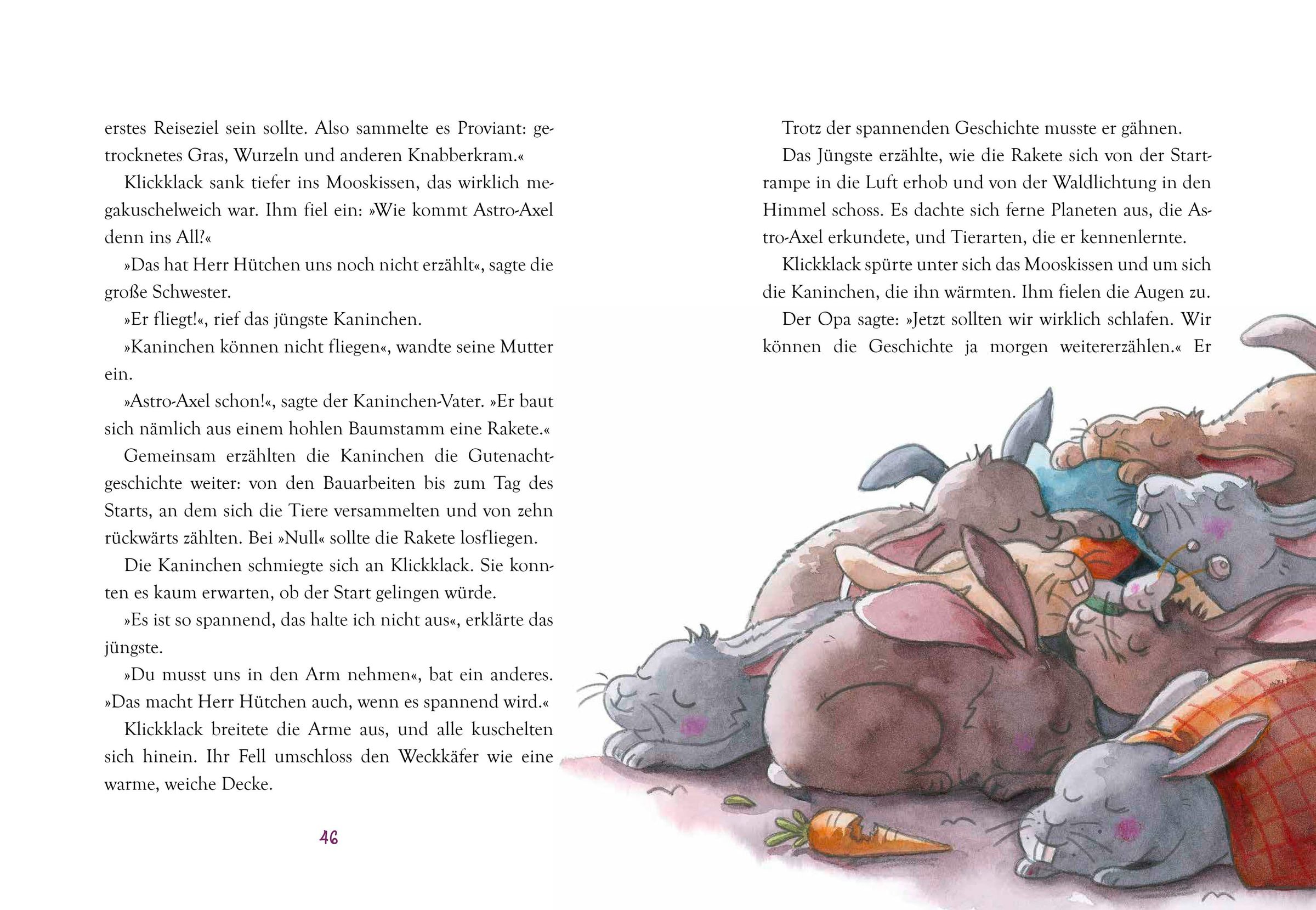 Herr Hütchen ist wieder unterwegs: Mit seinem Wagen voller Leuchtpilze zieht der freundliche Nachtwächter durch den Wald und bringt die Tiere ins Bett. Dazu gehören nun auch der Hamster, der erst vor Kurzem hierhergezogen ist und so gerne in die Sterne schaut, und der Wolf, der heute schlecht geträumt hat. Herr Hütchen weiß Rat, wenn die Tiere nicht zur Ruhe finden, und hat eine Menge neuer Ideen: Achtsamkeitsübungen, eine Einschlaf-Checkliste, eine Zuruf-Gutenachtgeschichte und mehr. Natürlich weiß er auch, wie der Biber und seine Freunde sich beim Zähneputzen garantiert nicht mehr langweilen. Und auf Übernachtungspartys ist das Eichelmännchen Ehrengast!